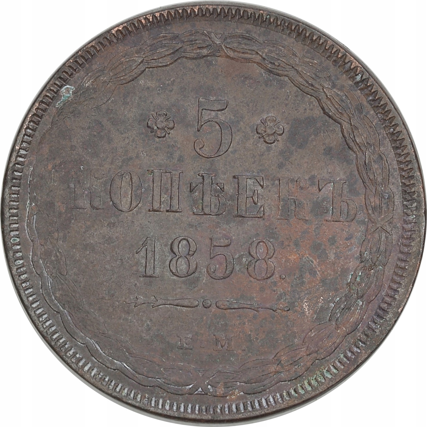 3.db.ROSJA , ОЛЕКСАНДР II, 5 КОПІЙК 1858 EM