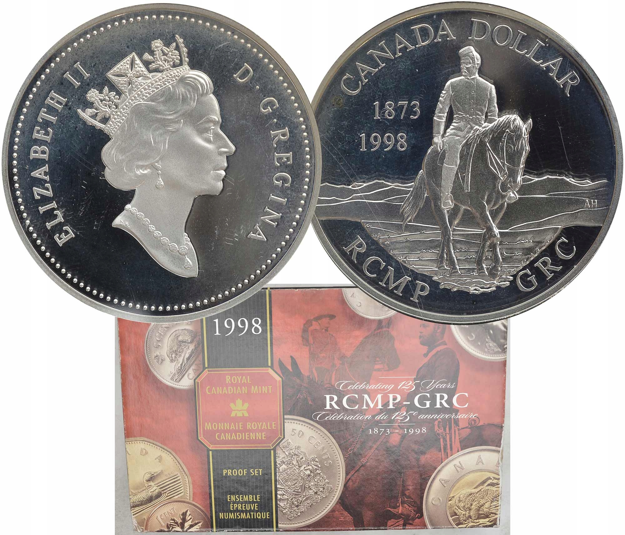 - Опис: НАБІР ДЛЯ ПРОБКИ. У набір входять монети номіналом: 1 цент; 5 Cents (вага по каталогу - 5,35 г); 10 центів (вага по каталогу - 2,4 г); 25 Cents (вага по каталогу - 5,9 г); 50 Cents (вага по каталогу - 9,3 г); 1 Dollar, 1 Dollar RCMP '1873 (вага за каталогом - 25,17 г); 2 Долари (срібло локальне з 24-каратним золотом, вага по каталогу - 8,83 г) - всі 1998 р. Монети в оригінальній монетній коробці + сертифікат. Фото монет зроблено із захисного пластику.