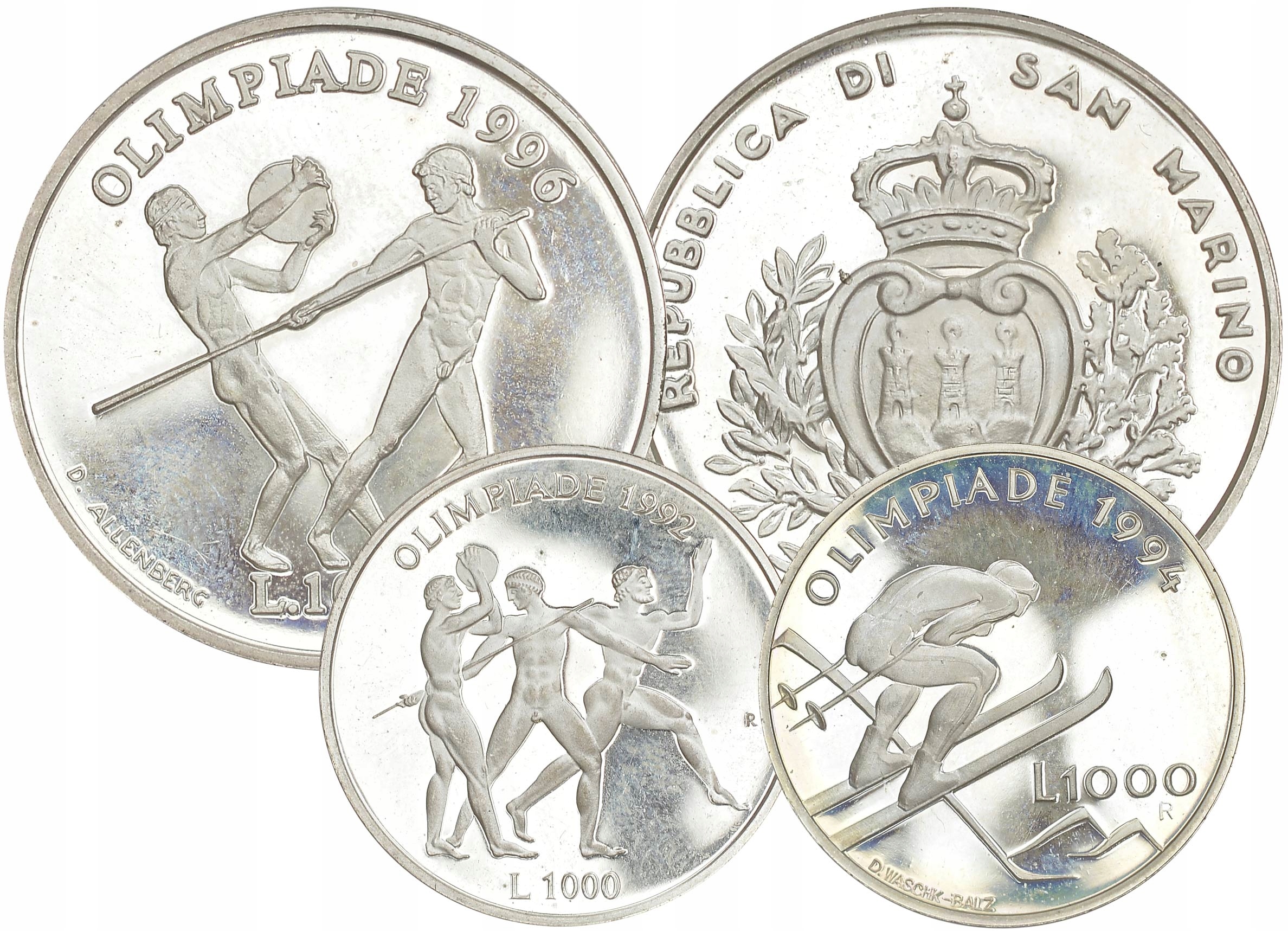 - Опис: М'ЯТНИЙ НАБІР. У набір входять три монети по 1000 лір із датами: Ігри 1992 року '92; 1994 Ігри '94; Ігри 1995 '96. Дзеркальний. Смуги патини. Відбитки пальців і мікроподряпини. Монети без шапки.