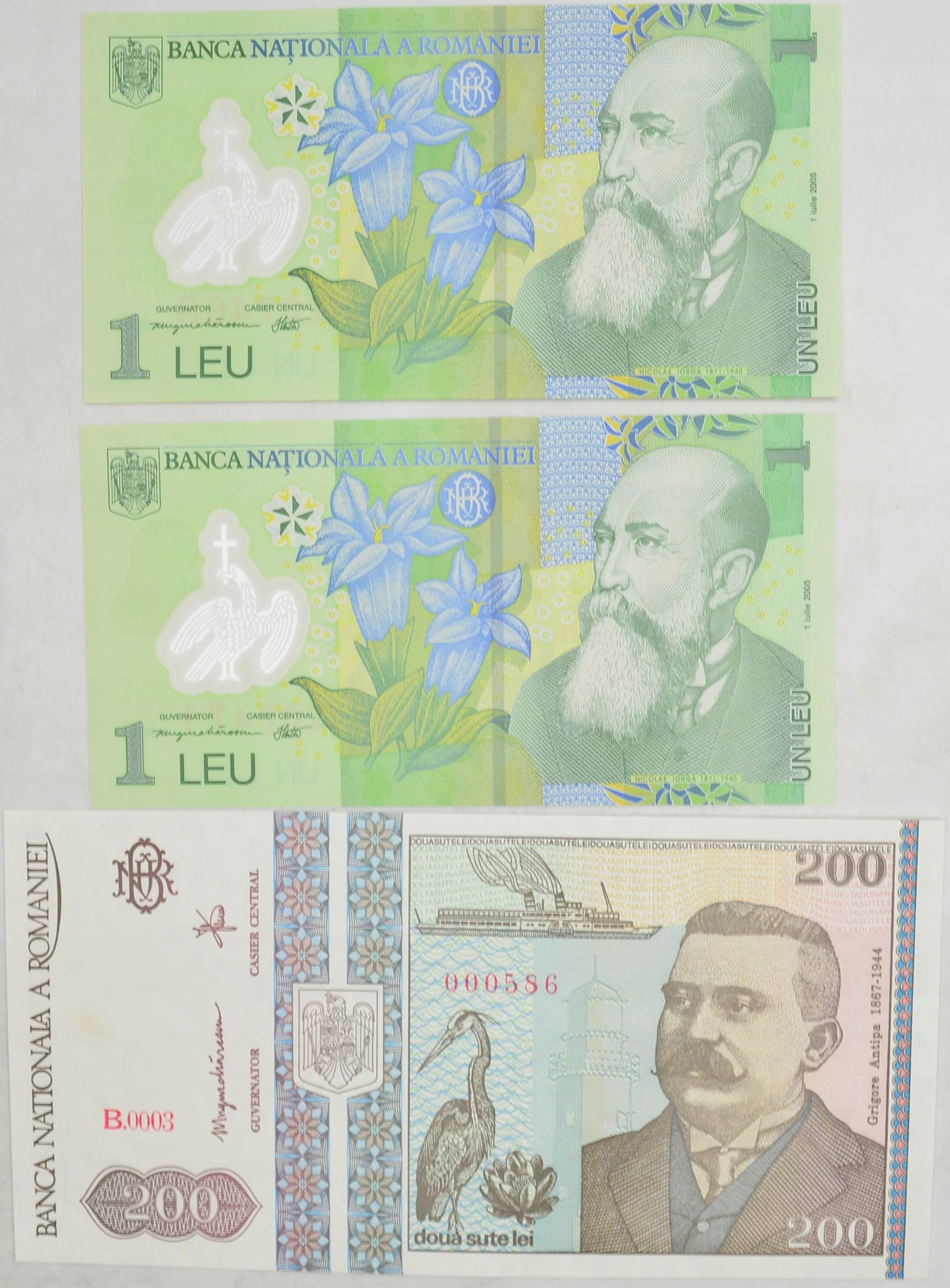 - Опис: набір містить банкноти наступних номіналів: 1 лей 2005 року (2 шт.) (St.1) 200 лей 1992 року (St.2)