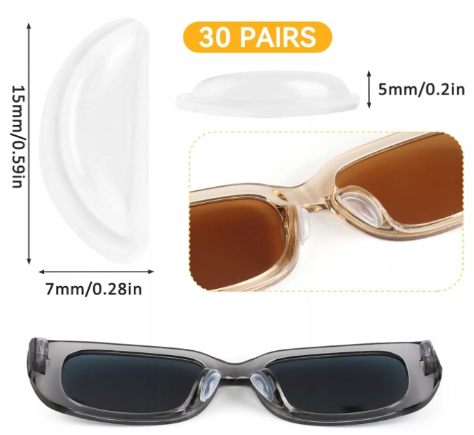 Носові подушечки ідеально підходять для сонцезахисних окулярів, окулярів в оправі та оптичних стекол.