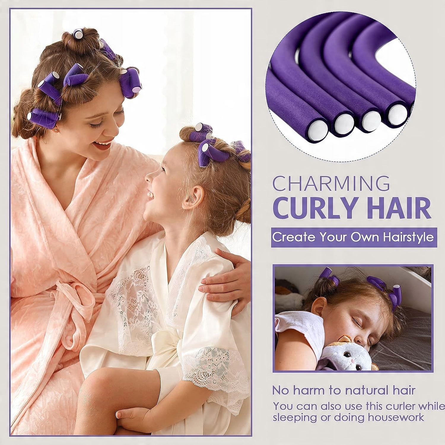 - Простий у використанні: просто скористайтеся цим гребінцем із щурячим хвостом, щоб відокремити невелике пасмо злегка вологого або сухого волосся, кілька разів намотайте пасмо волосся навколо цих бігуді та закрутіть його до шкіру голови, потім зморщені кінці. Цей стрижень тримає ваше волосся на місці, почекайте трохи, і ви отримаєте чарівне кучеряве волосся. Налаштуйте напрямок обертання волосся, щоб створити різні хвилі