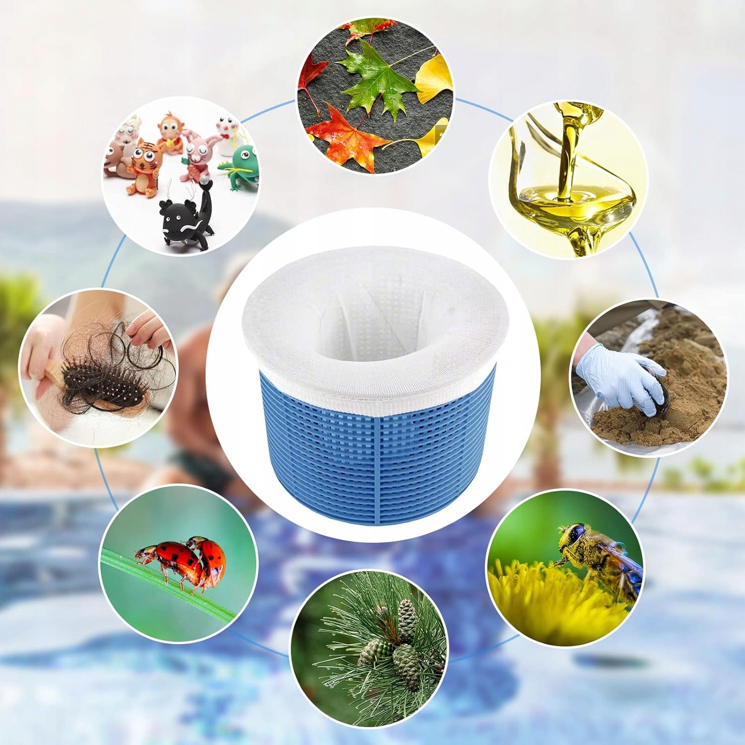 Шкарпетки для басейну для кошика для шкіри працюють як бар'єр між фільтром басейну та домішками, які його засмічують, допомагаючи підтримувати ефективну роботу фільтру з скітом у басейні.