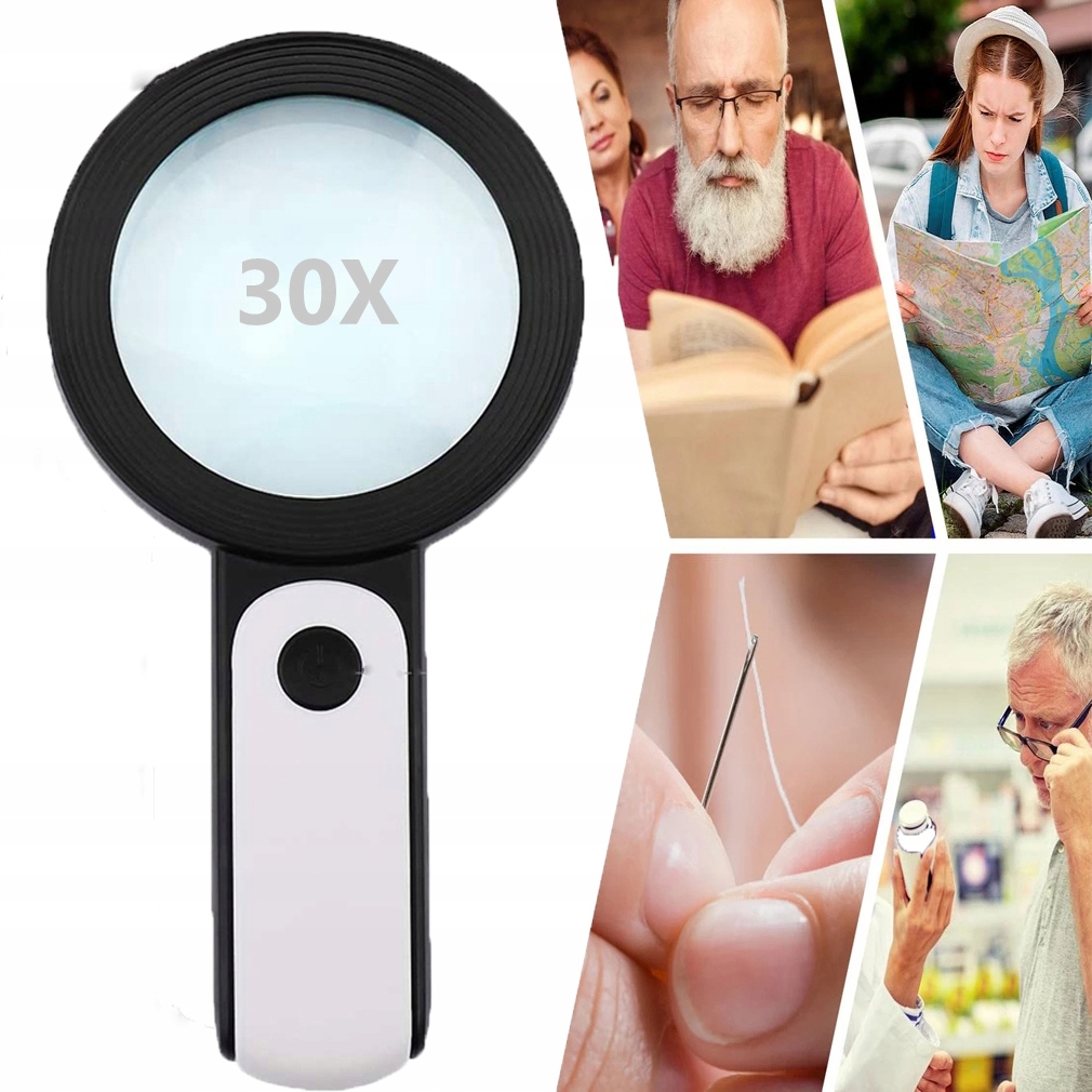 30-Х РУЧНЕ ЗБІЛЬШУВАННЯ ДЛЯ ЧИТАННЯ ЗІ СВІТЛОДІОДОМ ПОДАРУНОК