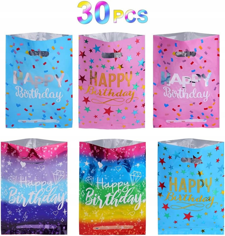 Додайте трохи чарівництва до будь-якого свята! Набір із 30 різнокольорових мішечків до дня народження — ідеальний спосіб елегантно упакувати подарунки, цукерки та невеликі подарунки для дітей. Яскраві кольори та милі візерунки змусять кожну дитину почуватися особливою.
