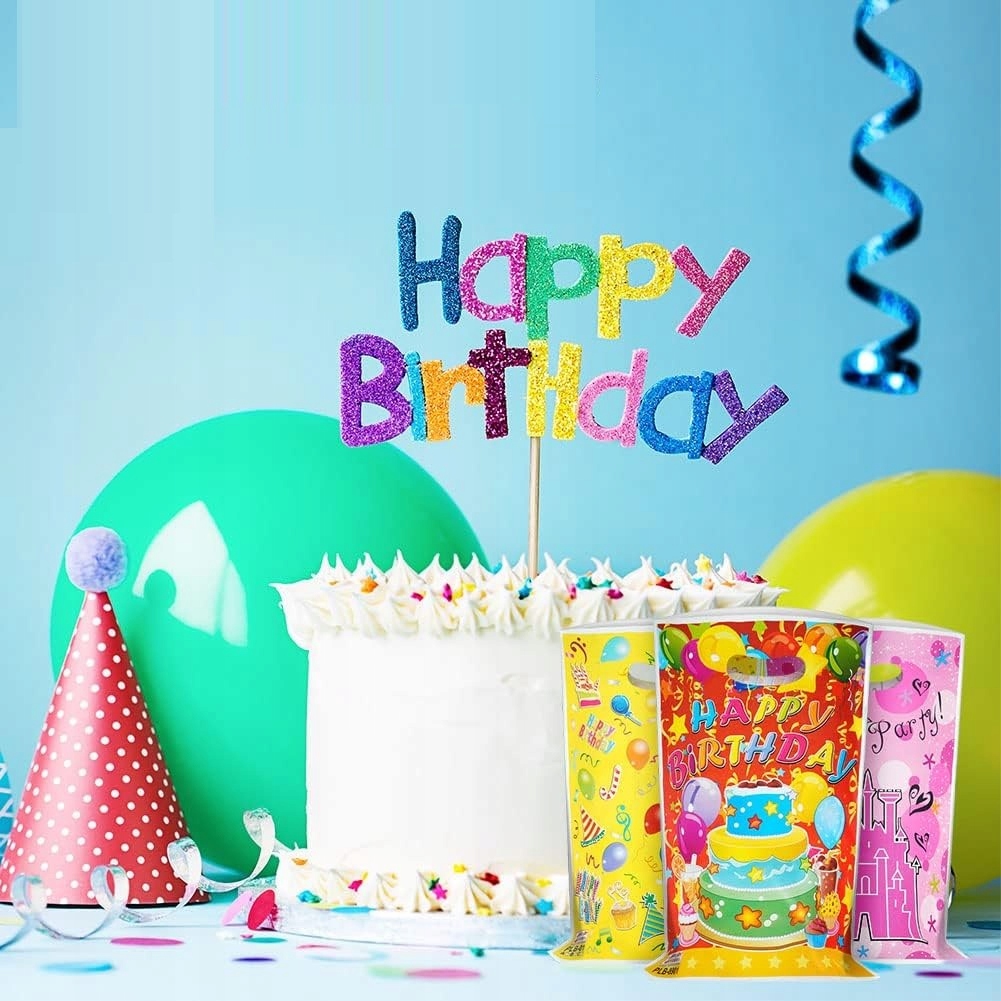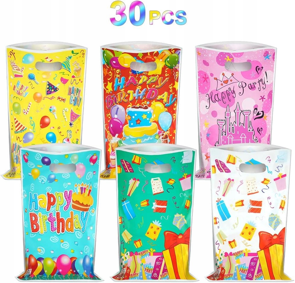 Набір із 30 барвистих пакетів для подарунків на день народження, які ідеально підходять для пакування подарунків, солодощів або маленьких подарунків для дітей. Для кожної сумки характерні веселі, дитячі мотиви, які додадуть шарму будь-якій вечірці. Виготовлені з міцного матеріалу, вони забезпечують безпеку речей, що зберігаються.