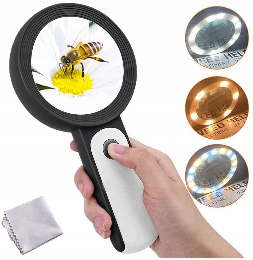 Ідеальний подарунок для людей похилого віку та дітей: ручна лупа з підсвічуванням підходить для людей похилого віку, щоб читати дрібний шрифт на посібниках, квитанціях, рецептах, ліках пляшок, а також для читання книг, газет, журналів тощо. Це сприяє науці та дослідженню природи та стимулює інтерес дітей до світу.