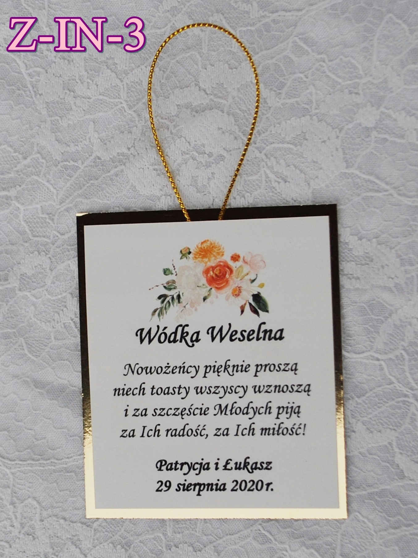 - імена нареченого і нареченої та дата весілля, указані у формі, яка має бути розміщена на кулоні.
