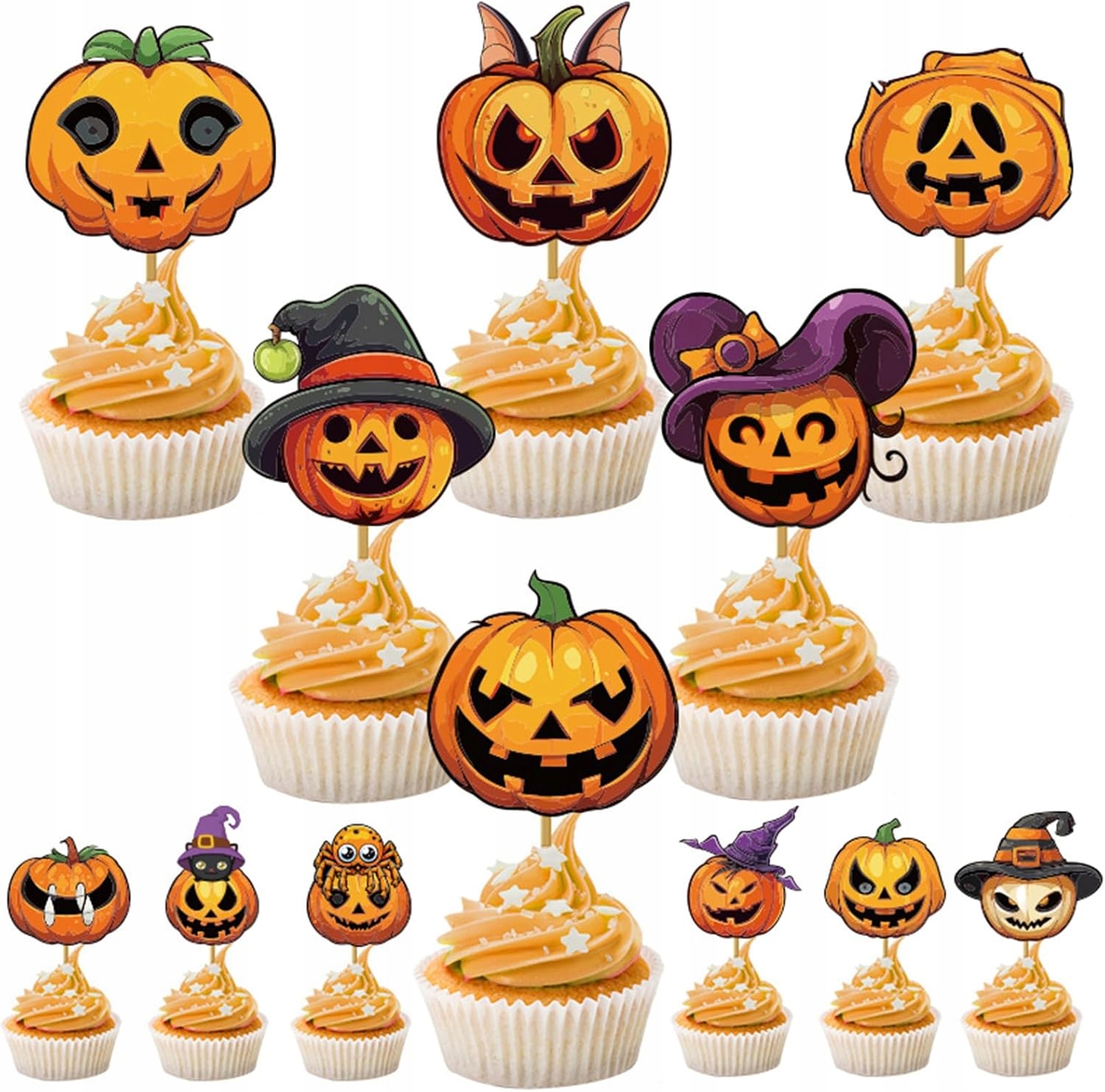 - ✅ Набір топперів для Хеллоуїна: містить 30 штук декоративних топперів для капкейків у формі капелюха відьми, гарбуза та кексу.