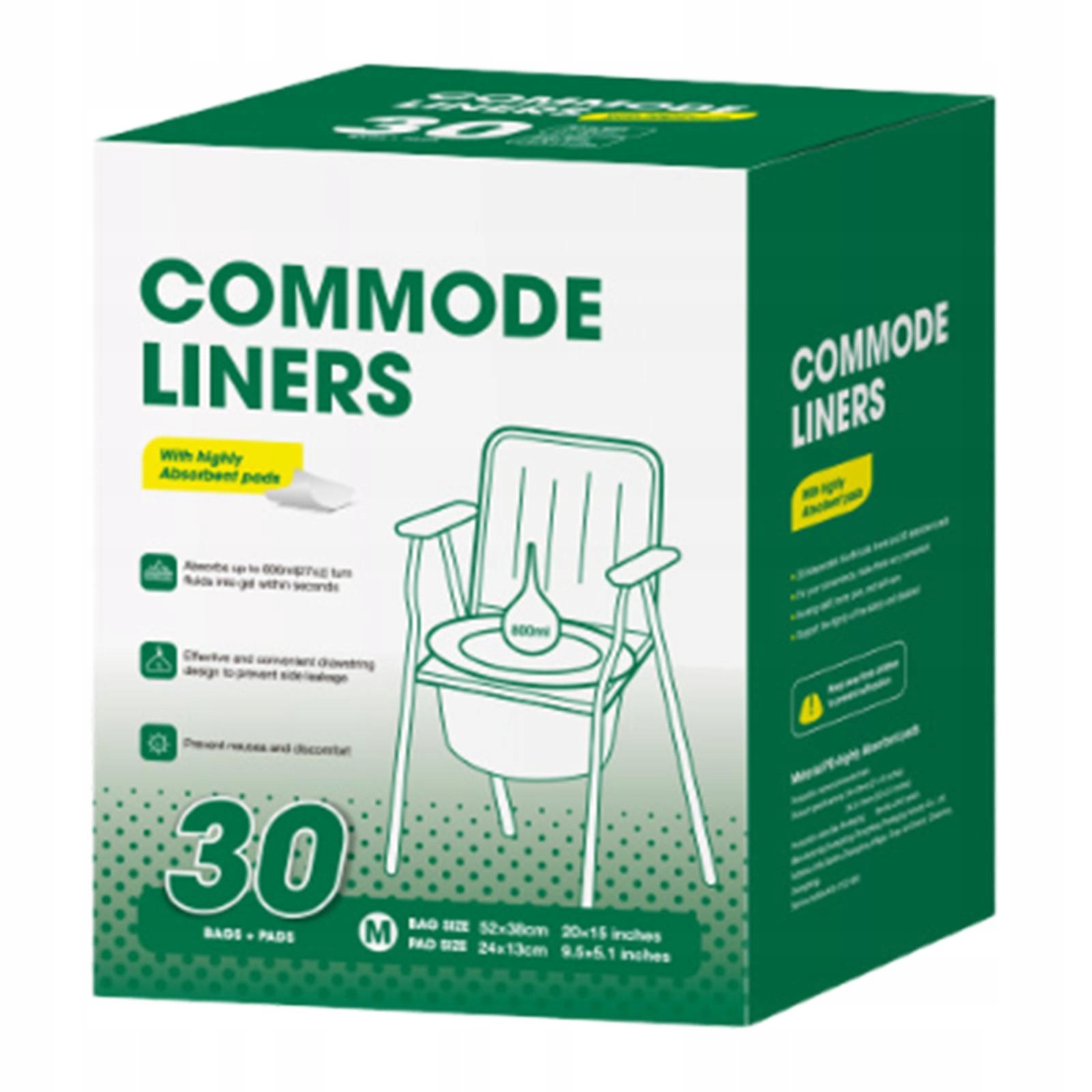 30 шт. Пакети для сміттєвих пакетів для комодів, зелені, 52 см x 38 см
