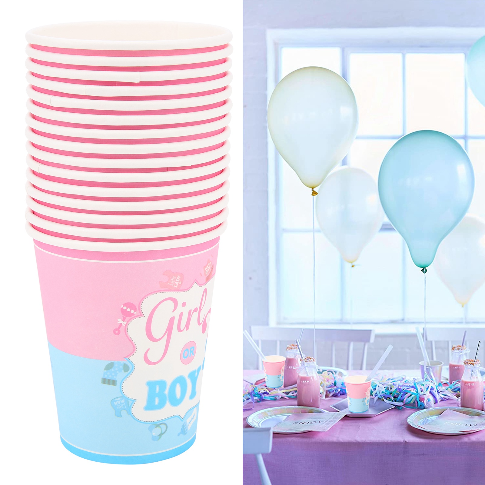 1. Блакитний і рожевий кольори створюють теплу атмосферу та чудово доповнюють вечірку. 2. Загалом 30 чашок у 2 упаковках, які достатньо великі, щоб використовувати їх для великого Виготовлений з екологічно чистих матеріалів, що підлягають переробці, компактний, зручний і не забруднює 4. Дуже підходить для всіх видів днів народжень, барбекю, танцювальних вечірок, коктейльних вечірок, вечірок і зустрічей, простий і зручний у використанні 5. Вишукане виконання , надійна якість, підлягає вторинній переробці, це ідеальні товари для вечірок