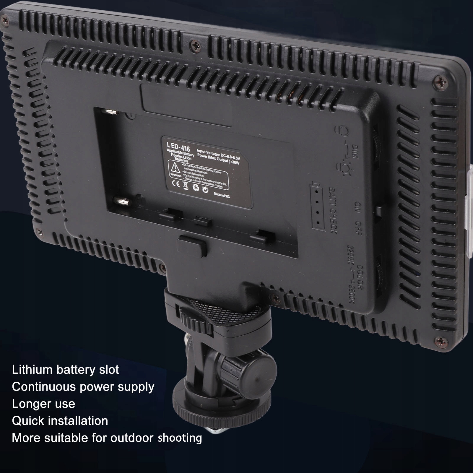 5. Налаштування багатьох кутів: світлодіод 416 світлодіодна відеоплікація потужністю 30 Вт може бути відрегульована на 180 градусах вгору і в Dó і обертати 360 градусів для регулювання.