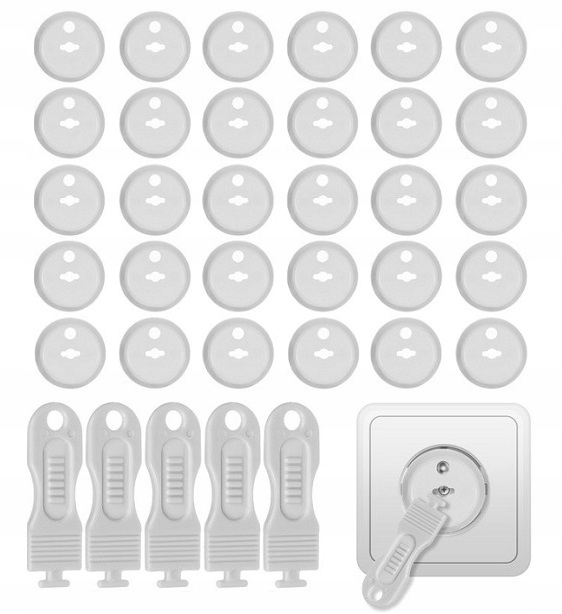 ЗАХИСТ ДІТЕЙ ДЛЯ ЕЛЕКТРИЧНИХ РОЗЕТОК З ЗАЗЕМЛЕННЯМ ТА ЗВИЧАЙНИХ РОЗЕТОК БЕЗ ШТИРІВ (30 ШТ.). + 5 КЛЮЧІВ