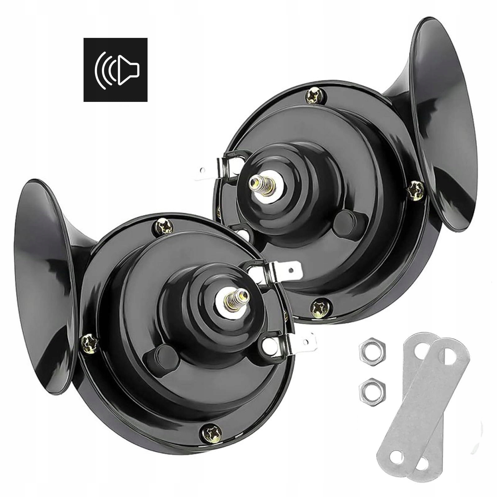 вміст упаковки : 2 динаміки автомобілів, 2 з'єднувальні плитки, 2 гайки. Автомобільний ріг виготовлений з ABS, довговічного та ударного стійкого; Кабель рогу виготовлений з оцинкованого мідного дроту, з хорошою провідністю, низьким теплом та тривалим життям.