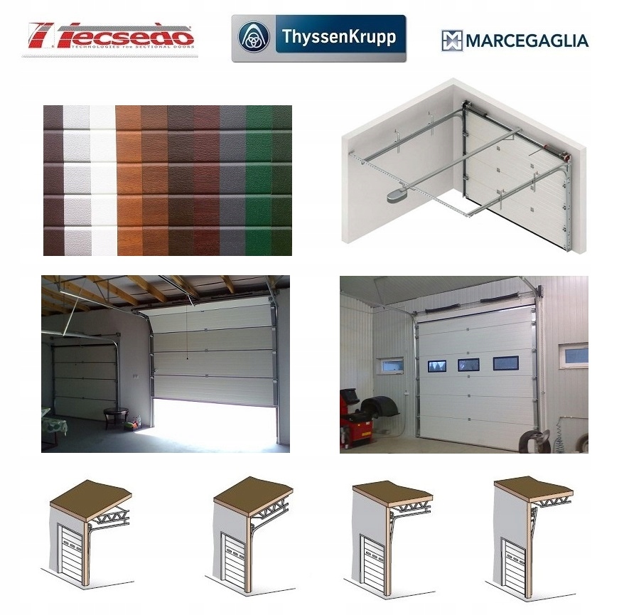 - Ми пропонуємо секційні гаражні ворота з панелей найвищої якості відомих компаній: Tescedo, Marcegalia, ThyssenKrup