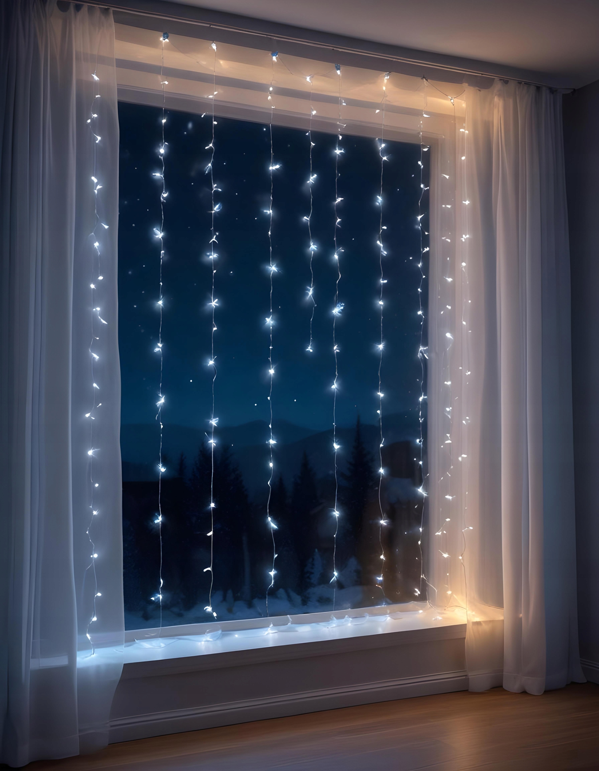 ⭐️ 300 LED LIGHT CURTAIN Christmas Tree Lights GarlandCOLD WHITE 300 LED LIGHT CURTAIN холодного, білого відтінку ідеально підходить для прикраси вікна, стіни, ялинки або тераси.