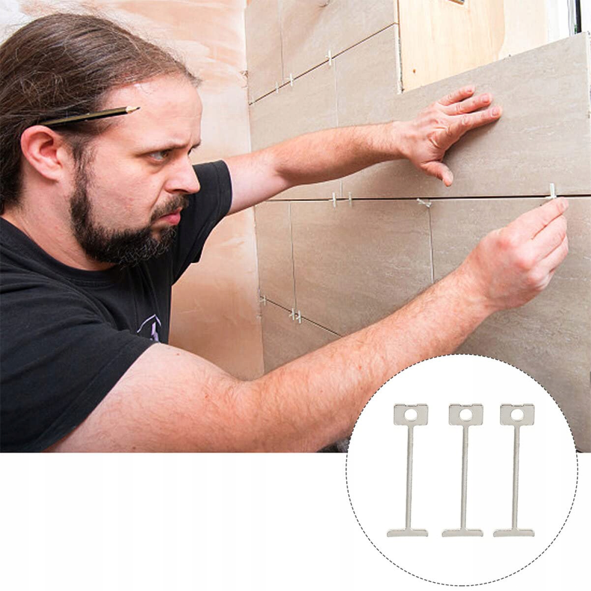 Застосування: набір змінних сталевих голок добре вписується в систему вирівнювання підлогової плитки; система вирівнювання плитки забезпечує рівність між плитками, уникаючи рухів під час схоплювання розчину.