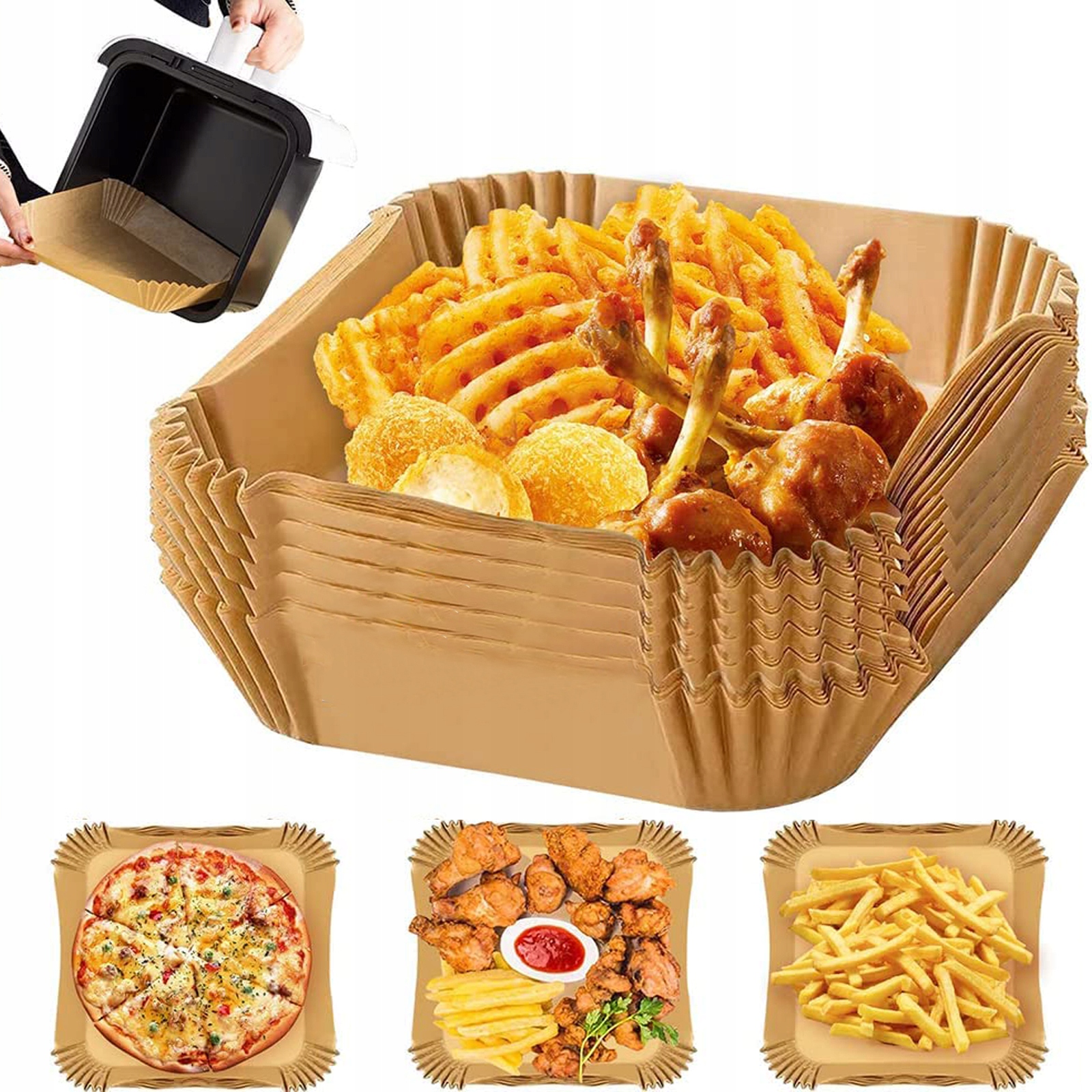 🍟 Аерофритюрниці з пекарським папером ідеально підходять для 5-8-літрових аерофритюрниць, для смаження, смаження, запікання, приготування на пару, запікання, мікрохвильової печі або подачі.