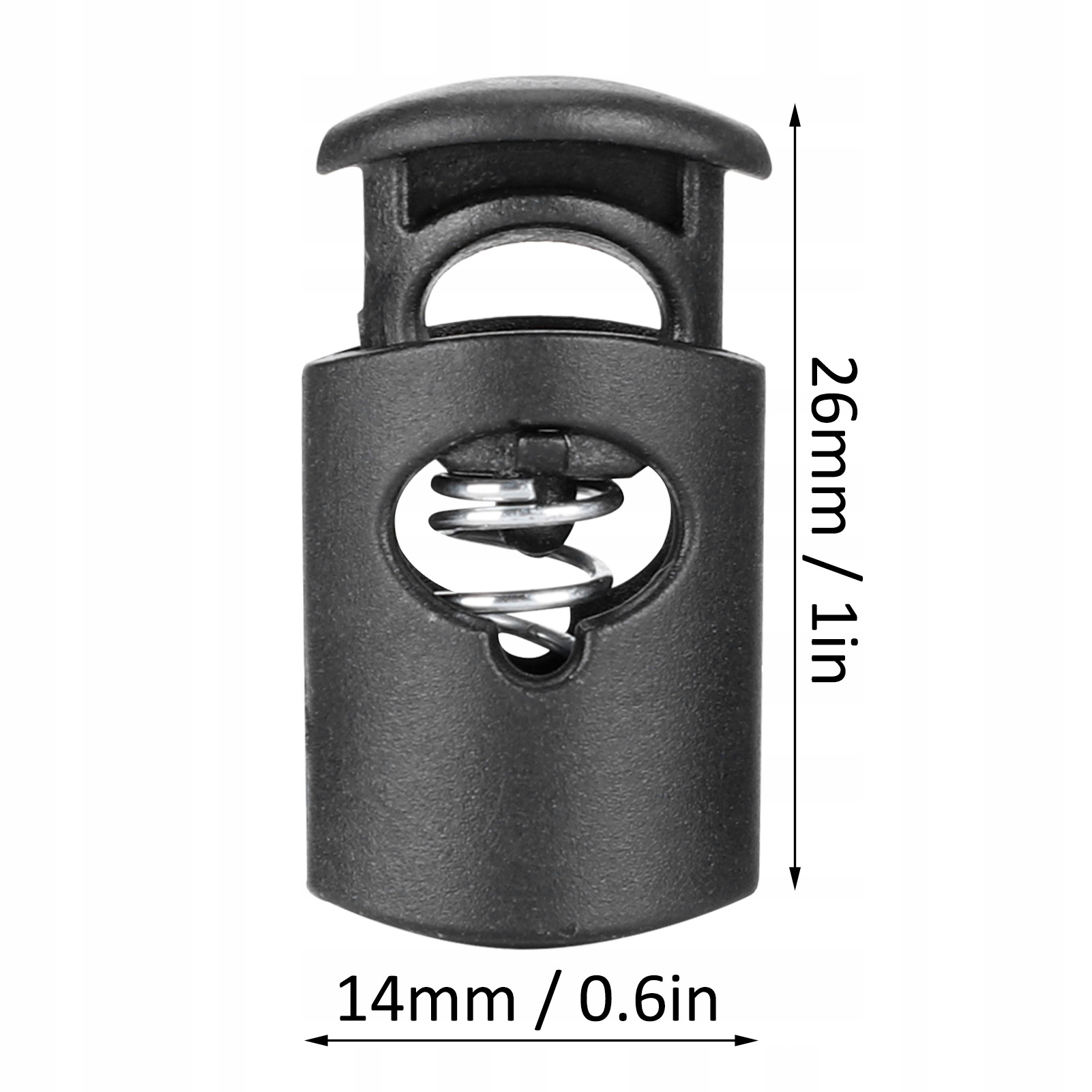 1. Він використовується для кріплення мотузки з пружинним навантаженням, яке є пружинним навантаженням для забезпечення натягу та безпеки мотузки. 2.Міцний високоякісний нейлон, міцний і легкий, має тривалий термін служби. 3. Широко використовується в ремінцях, багажі, одязі, рюкзаках, спортивному взутті, шнурках, наметах тощо. 4. Підходить для всіх видів мотузок і типів мотузок, може використовуватися для мотузок для парасольок і різних вправ на відкритому повітрі та на відкритому повітрі. 5. Велика кількість, дуже практична, може задовольнити потреби використання та заміни.