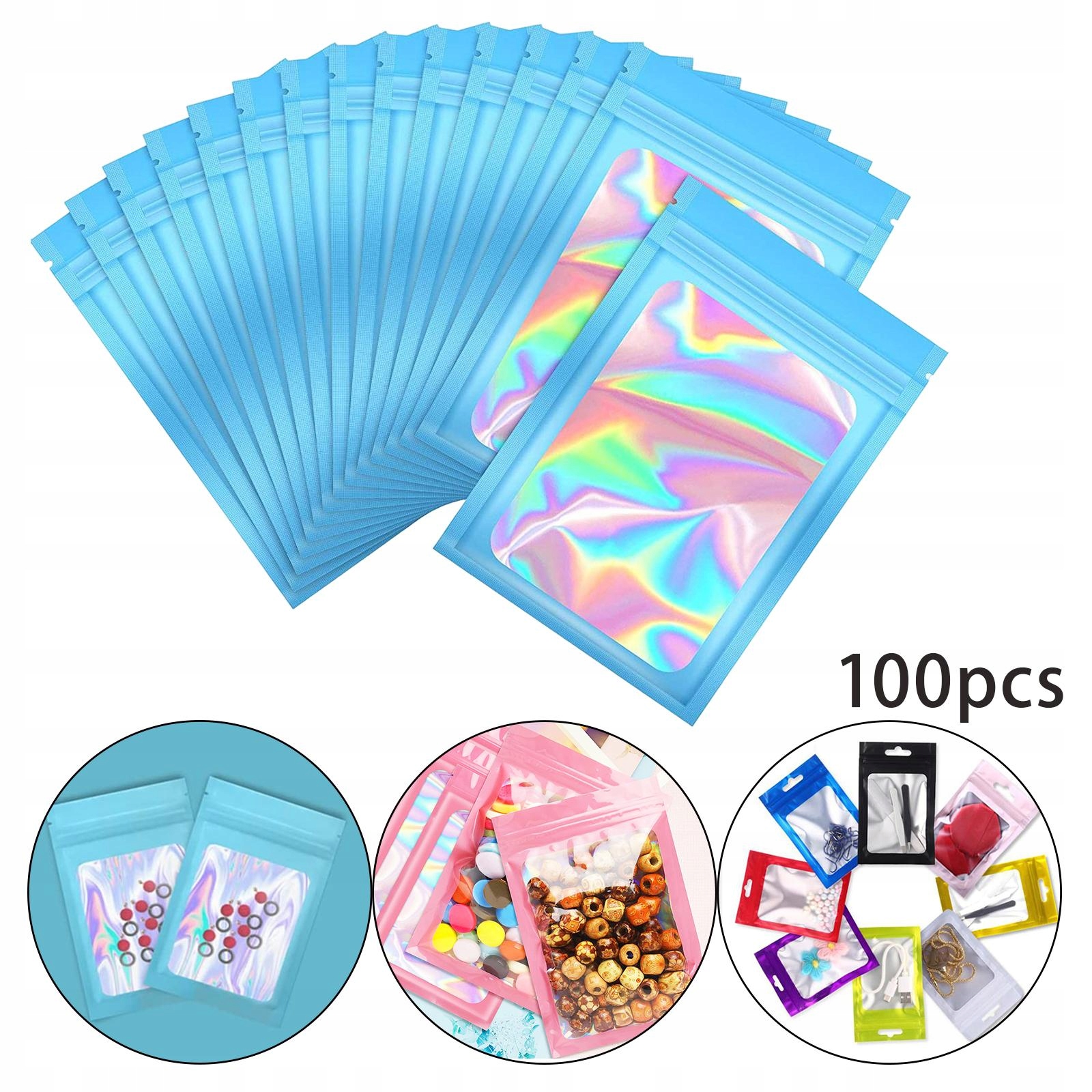 Прозорий дизайн: Наші пластикові пакети постачаються з одним кольором ззаду та прозорим голографічним, щоб чітко відображати продукт