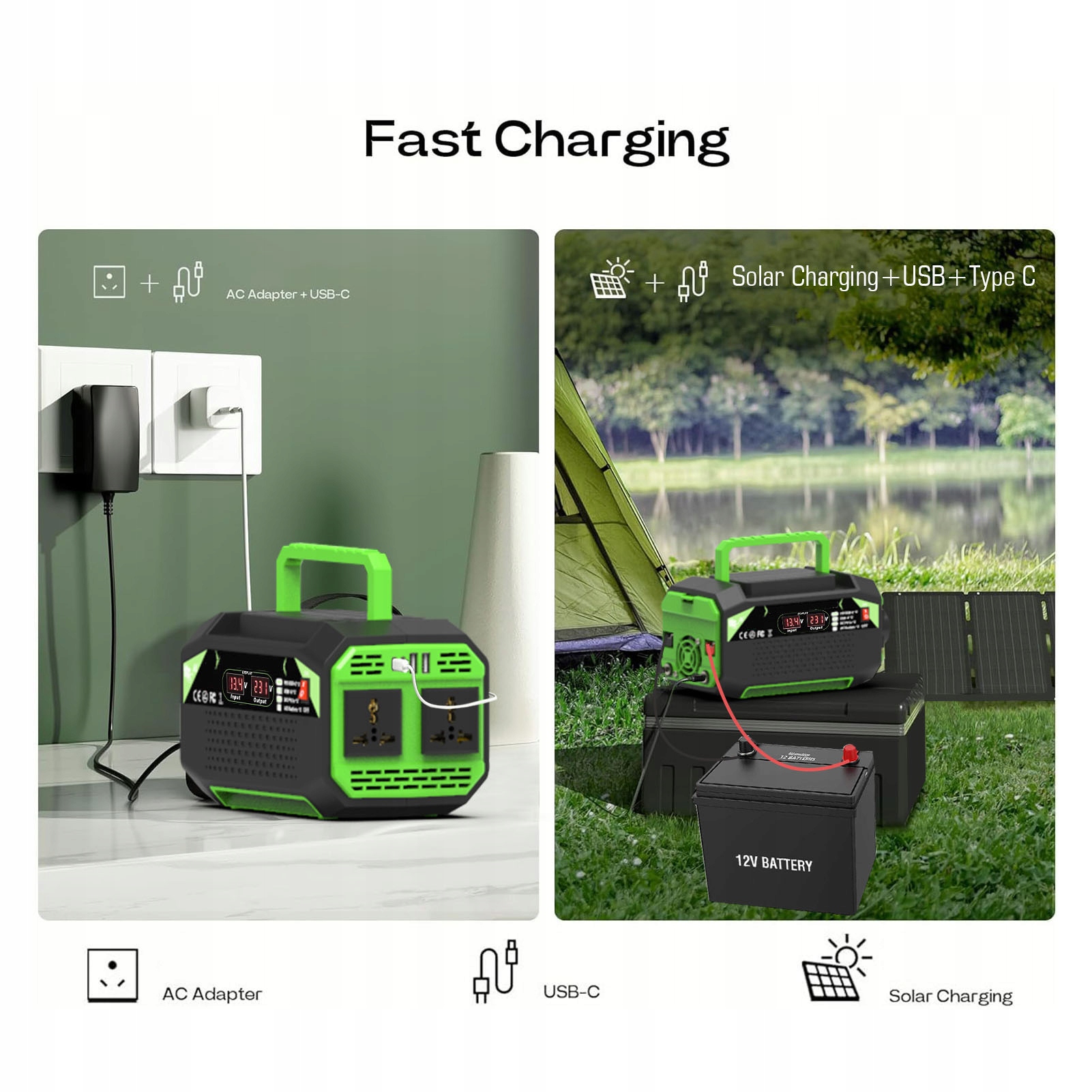 2. Зручність швидкого заряджання: оснащений портом швидкого заряджання USB C PD потужністю 24 Вт і портом швидкого заряджання USB 24 Вт QC, цей інвертор має чотири USB-порти та два інвертори змінного струму, що робить його вибором для подорожей, пригод у кемпінгу на автомобілі, щоденного використання та екстрених ситуацій.