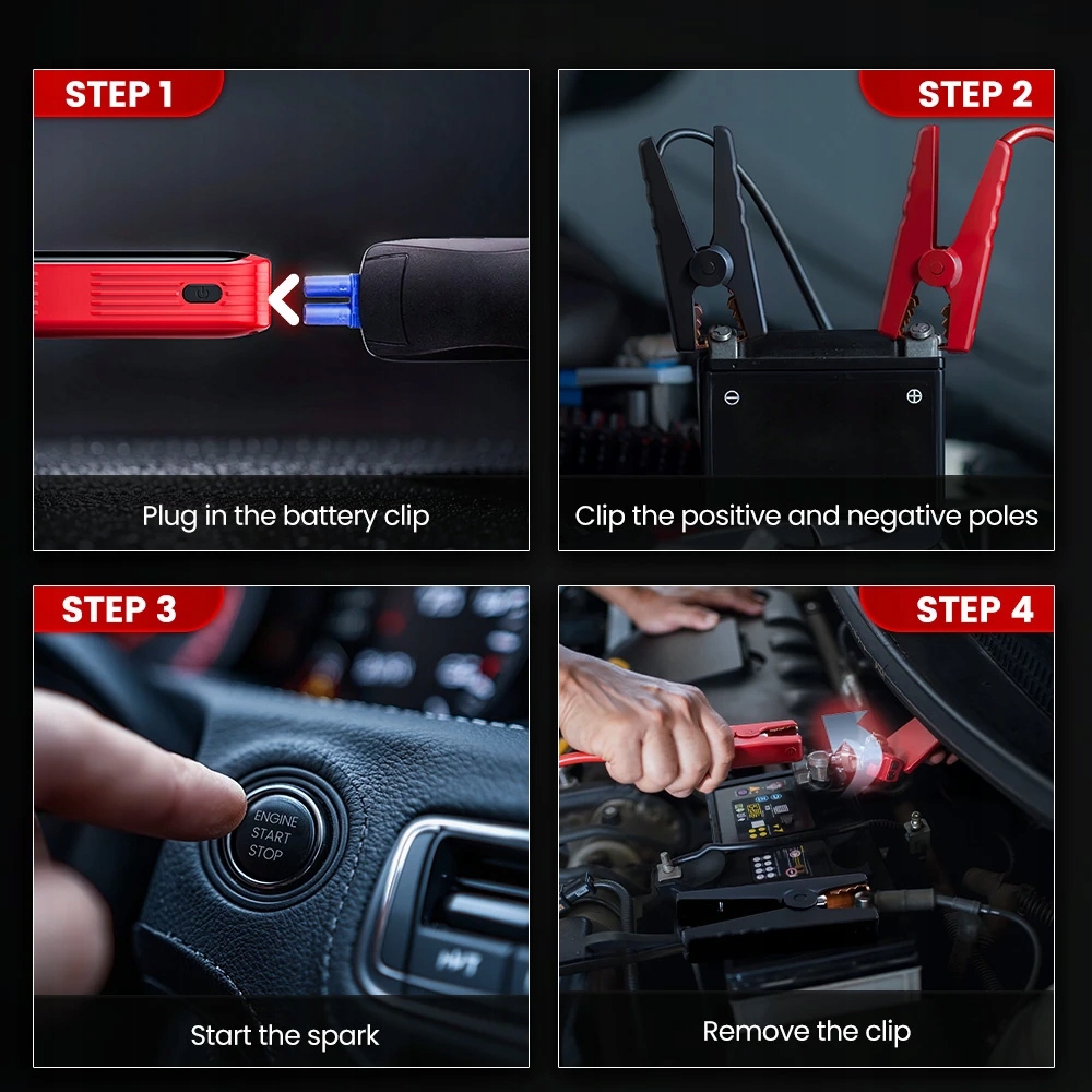 Сумісні з бензиновими двигунами до 4,0 л і двигунів високого тиску до 3,0 л, включаючи 3,0 л, включаючи автомобілі, суві, мотоцикли, вантажівки та навантаження (12 В систем). На додаток до запуску стрибка, він подвоюється як Power Bank 5 V/1 A і містить вбудований зарядний кабель 3-в-1 (Micro USB, Type-C, IP), що усуває потребу в додаткових кабелях під час зарядки телефонів, планшетів, камер та безпілотників-що робить його універсальним супутником надзвичайних ситуацій.
