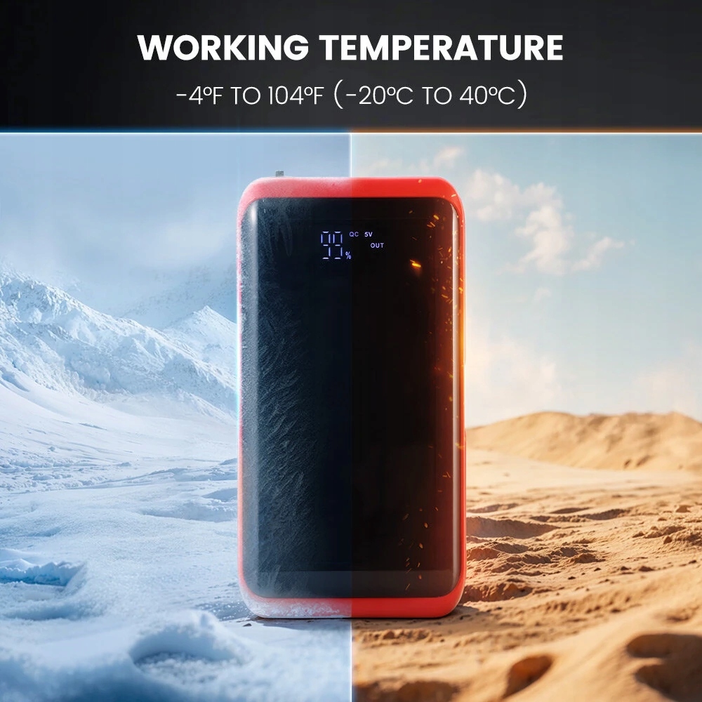 Розроблена для роботи у складних умовах, цей стартер для стрибків працює без проблем від -20 ° C до 40 ° C, забезпечуючи надійну енергопостачання в холодні зими або роки спалювання. Його тверді внутрішні схеми запобігають перегріву та коливань напруги.