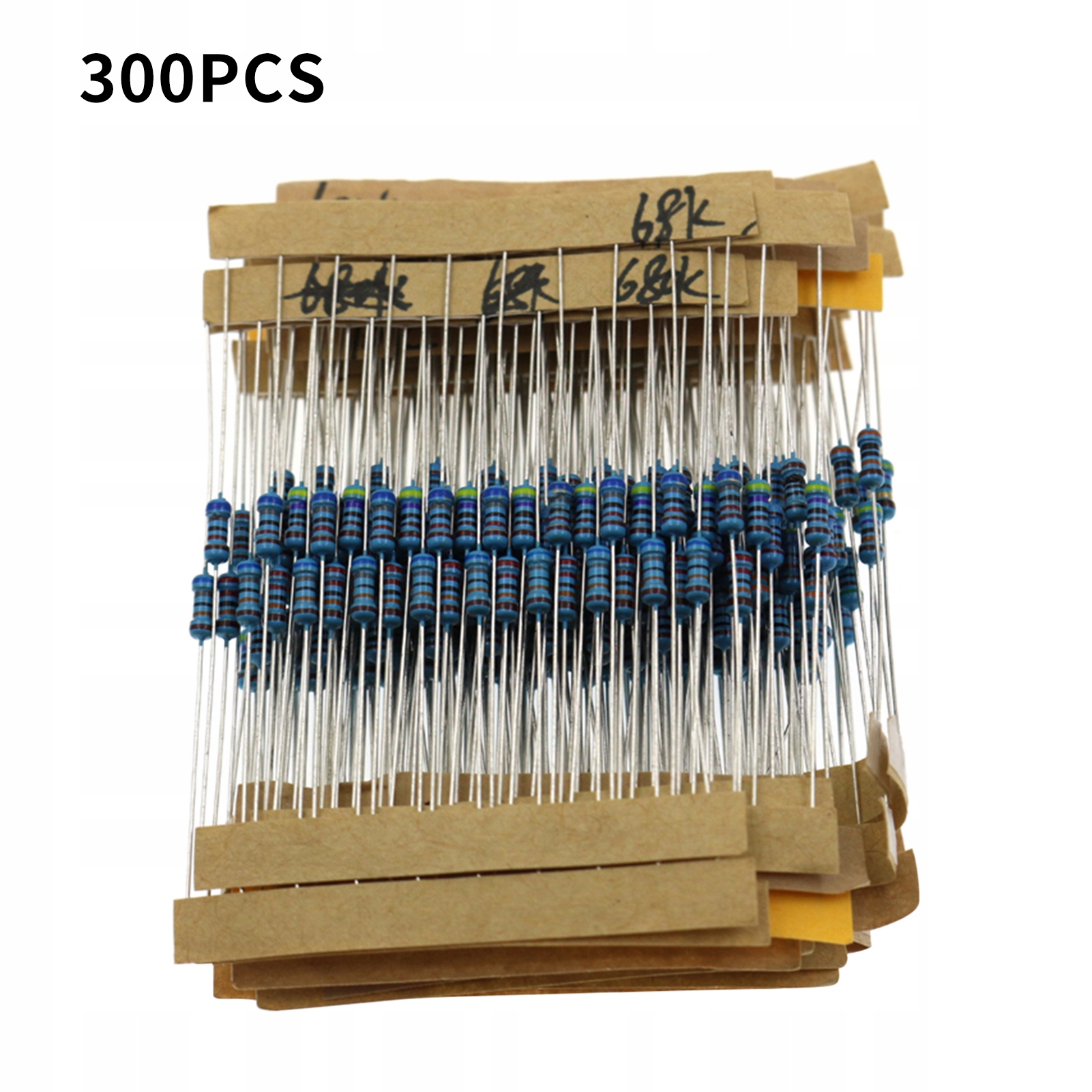 300pcs 1/4 Вт 1 резистори з вуглецю, встановлені від 10 до 1 м ом 30 бс