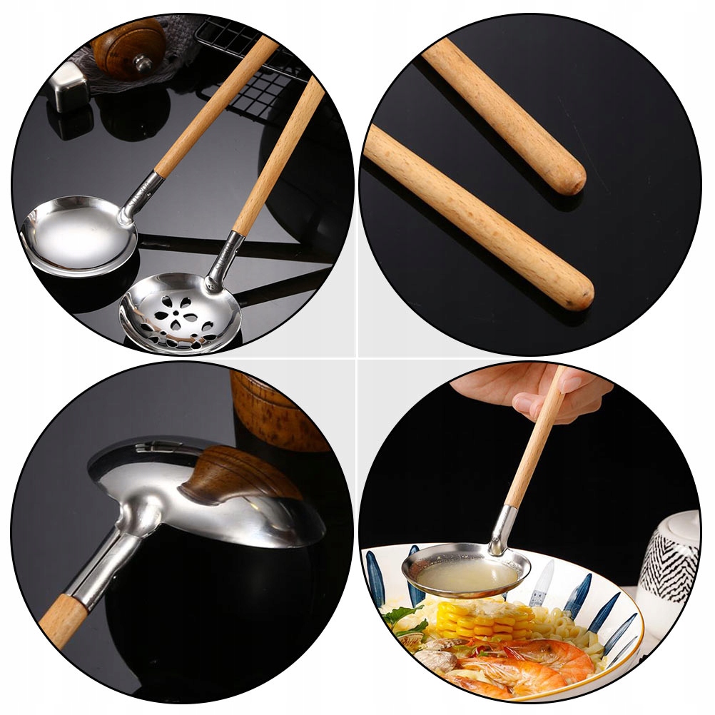 ✅ проводиться з якості матеріалу з нержавіючої сталі та деревини, безпечного та для використання, не легко зламати чи деформації, довге життя. Цей набір включає суп та ложку слота, приємне з'єднання для вас для подачі та приготування гарячого горщика, принесіть більше зручності.