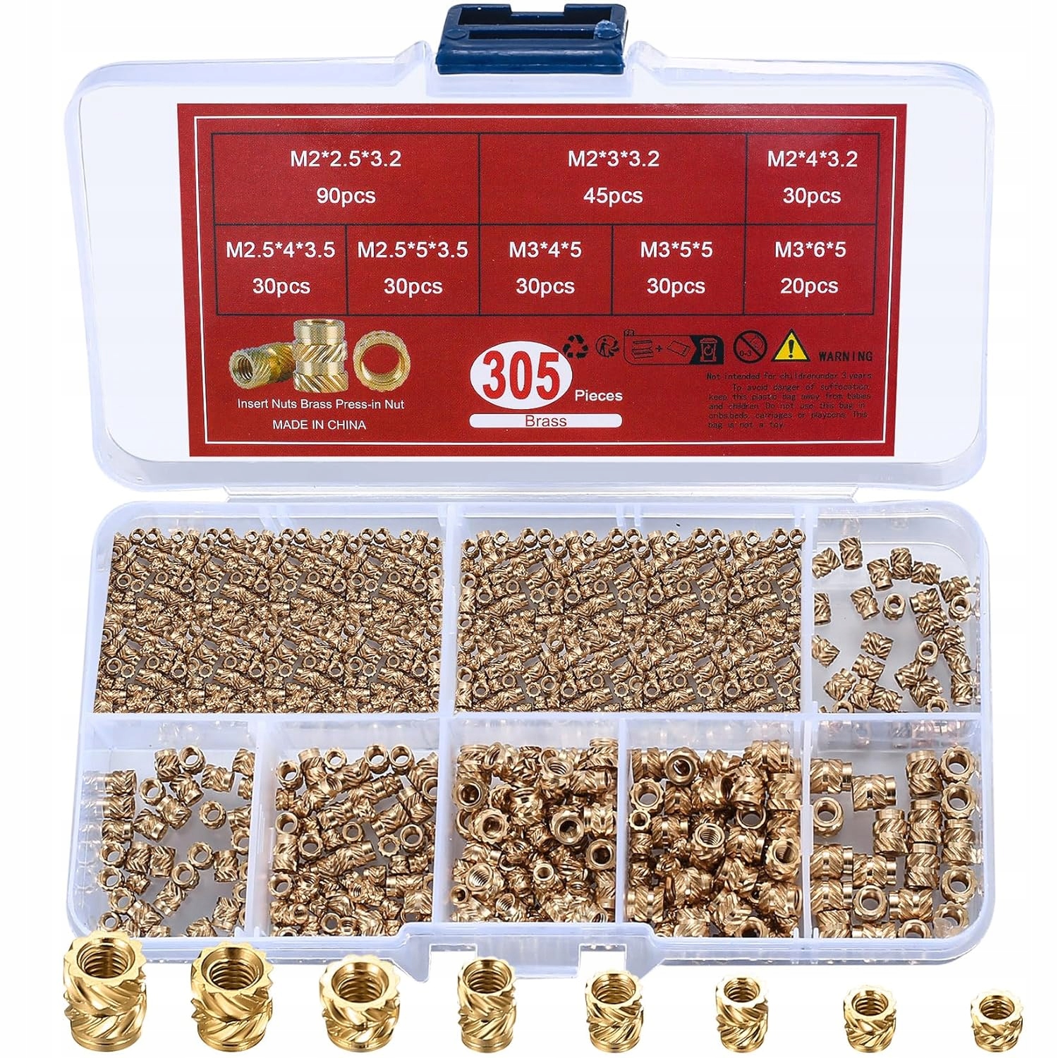 Набір містить 305 штук різьбових вставок розмірів M2, M2,5 і M3. Велика кількість гарантує, що ви завжди матимете потрібну вставку для вашого проекту без частого поповнення запасів.