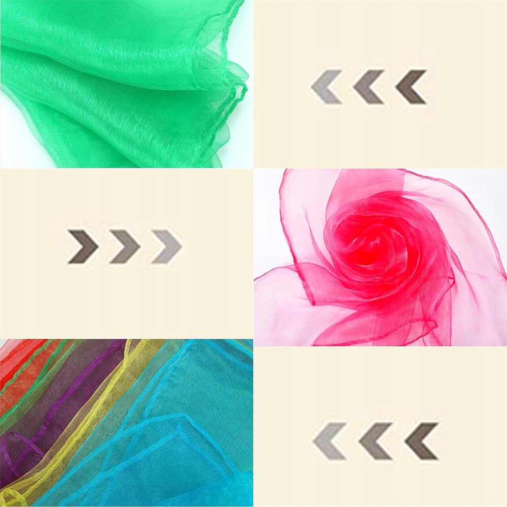 Танцювальні шарфи -це багатофункціональна опора для дітей для танцю, виступи та створення різних танцювальних рухів. Вони не лише дозволяють дітям практикувати координацію тіла та танцювальні навички, але й стимулювати їх творчість та виконавчий потенціал.