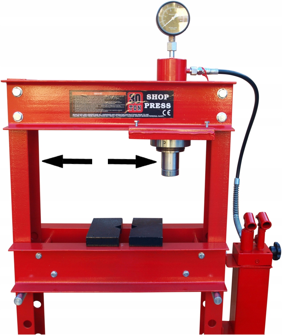 Використовуючи доданий важіль, ви можете отримати тиск до 30 тонн, який точно контролюється манометром. Двоступінчастий насос забезпечує швидше просування поршня та повільніше й точніше.