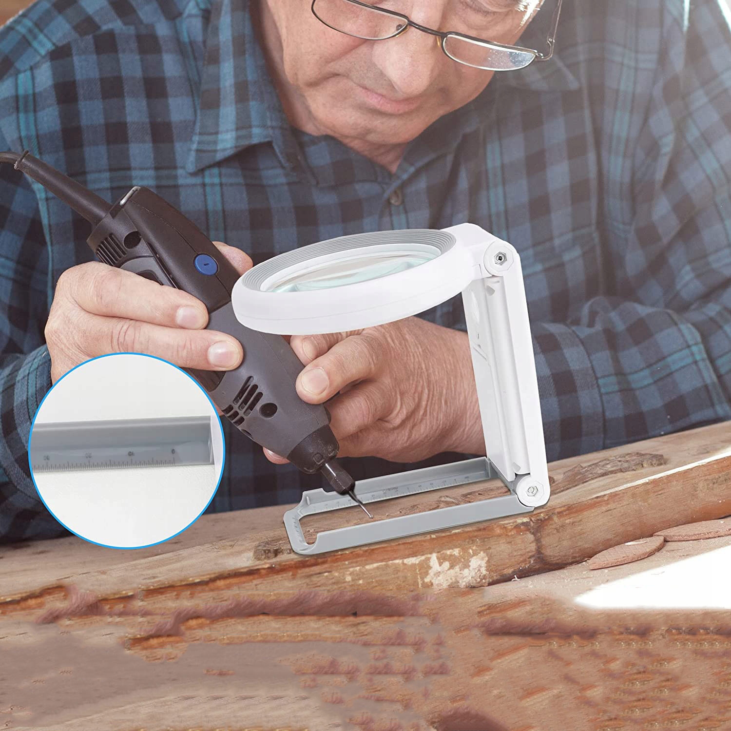🔍 добре розроблений і універсальний: Цей освітлений lup 2 в 1 зі складеною, некосовною підставкою та тривалістю тривалістю підходить для читання, ремонту, голки, розміщення, головоломки та любителів.