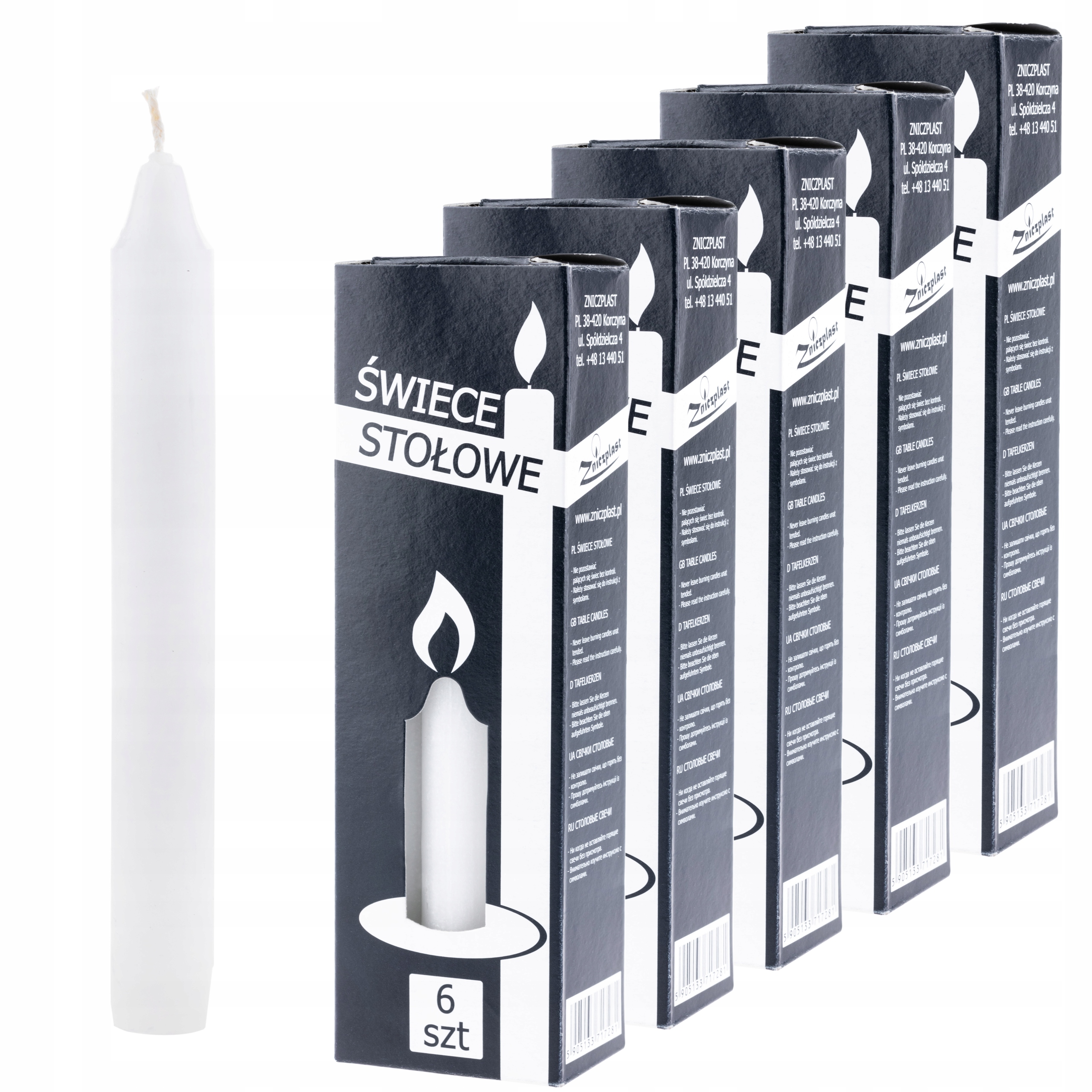 Аукціон стосується п’яти коробок, кожна з яких містить 6 білих простих свічок.