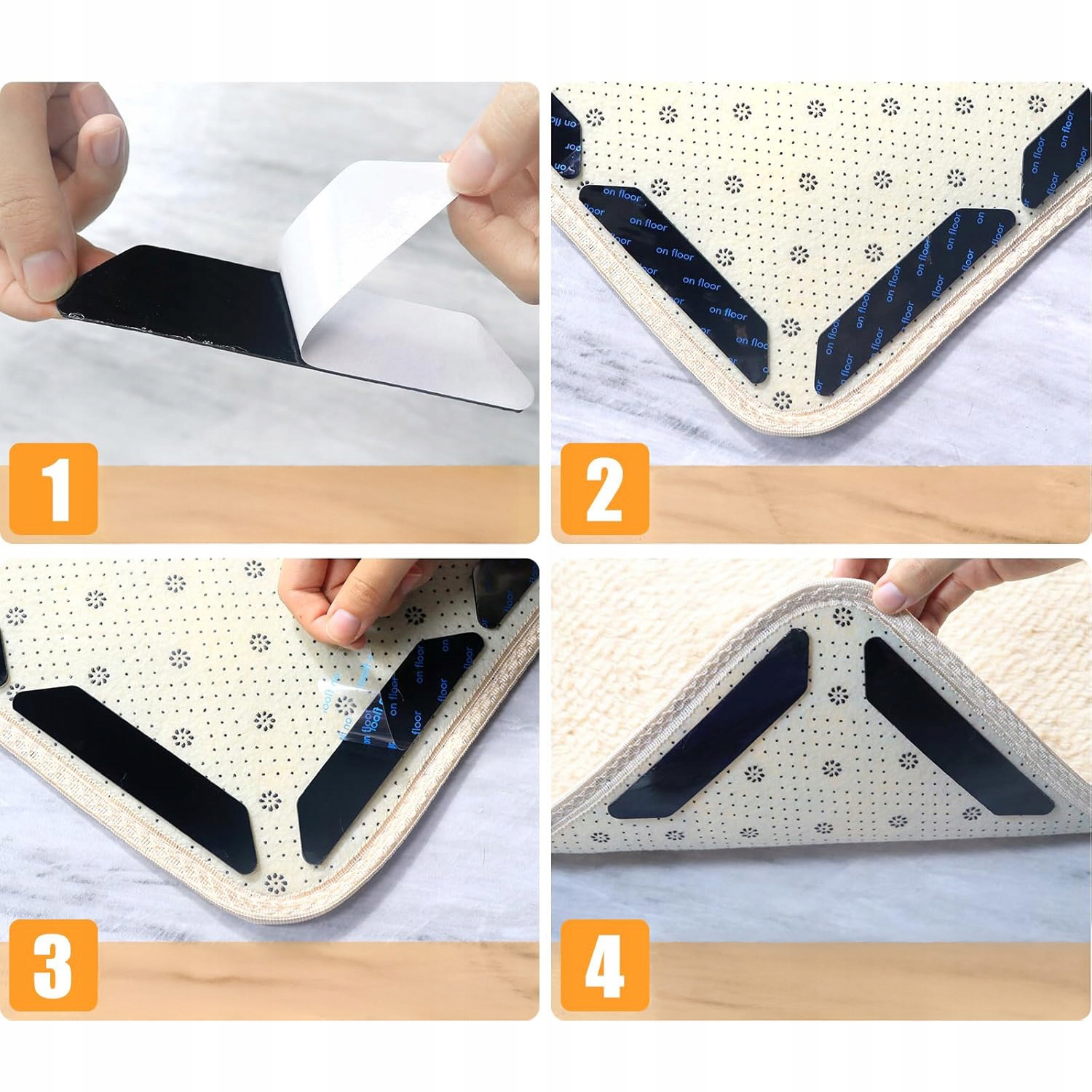 Просто дотримуйтесь інструкцій, щоб прикріпити килимок проти ковзання, і насолоджуйтеся стійким килимом. Перед використанням просто почистіть і висушіть килим, килимок або циновку. Зніміть клейовий шар і приклейте його до виробу. Потім зніміть захисну плівку і приклейте її до підлоги. Щоб зняти його, обережно підніміть килим, килимок або килимок від підлоги.