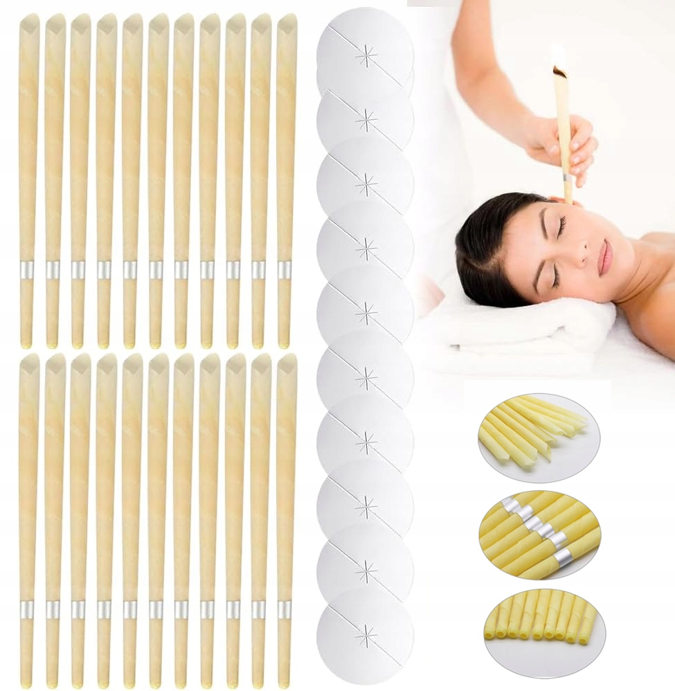 30x ВУШНІ СВІЧКИ EAR CANDLING ЗДОРОВІ ВУША СВІЧКИ ПІДСТАВКИ