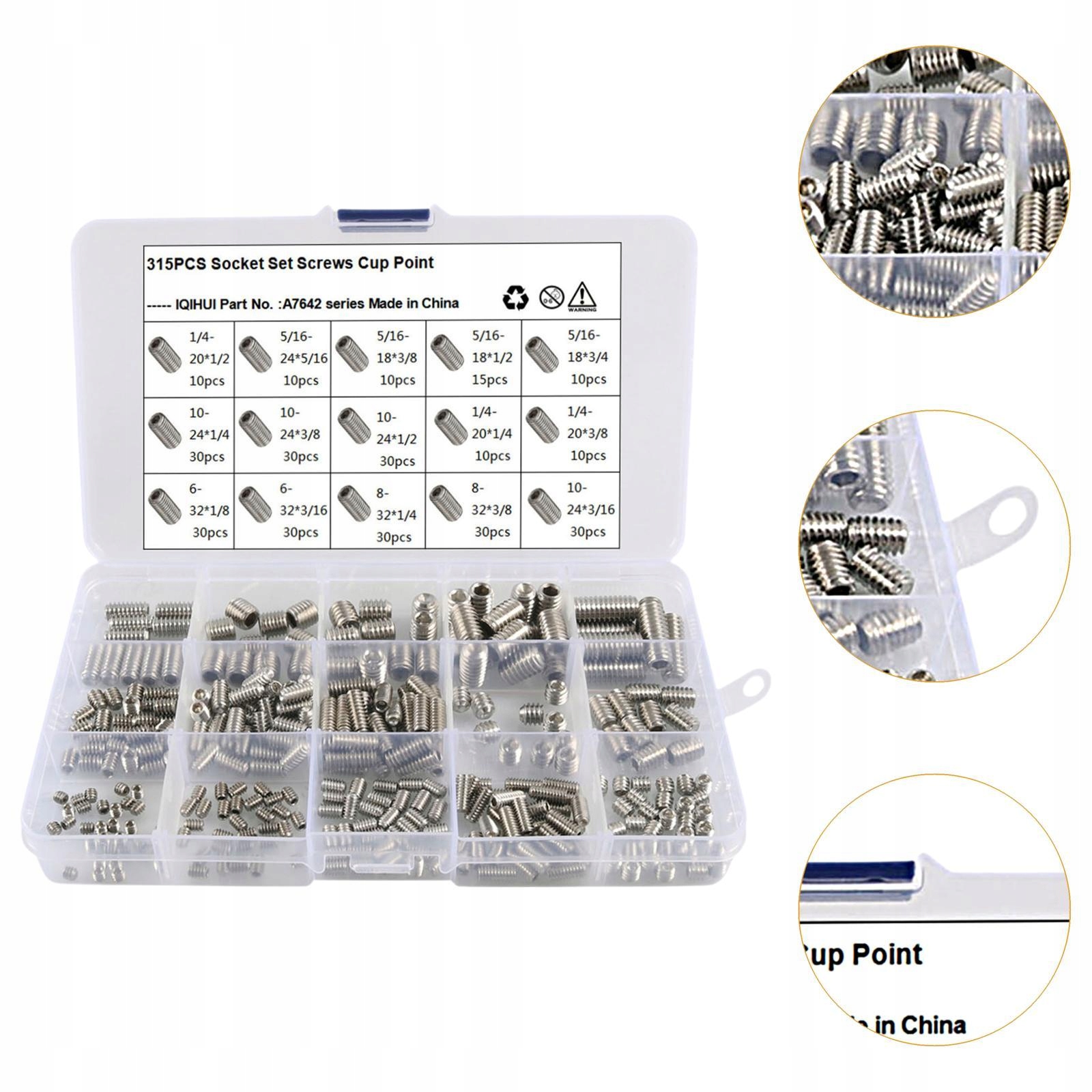 [вміст упаковки]: Він містить 315 гвинтів з внутрішньою конічною головкою, доступними в 15 різних розмірах для задоволення різних потреб у встановленні. Незалежно від того, працюєте ви над невеликим домашнім проектом чи великим замовленням будівництва, ці гвинти пропонують необхідну універсальність.