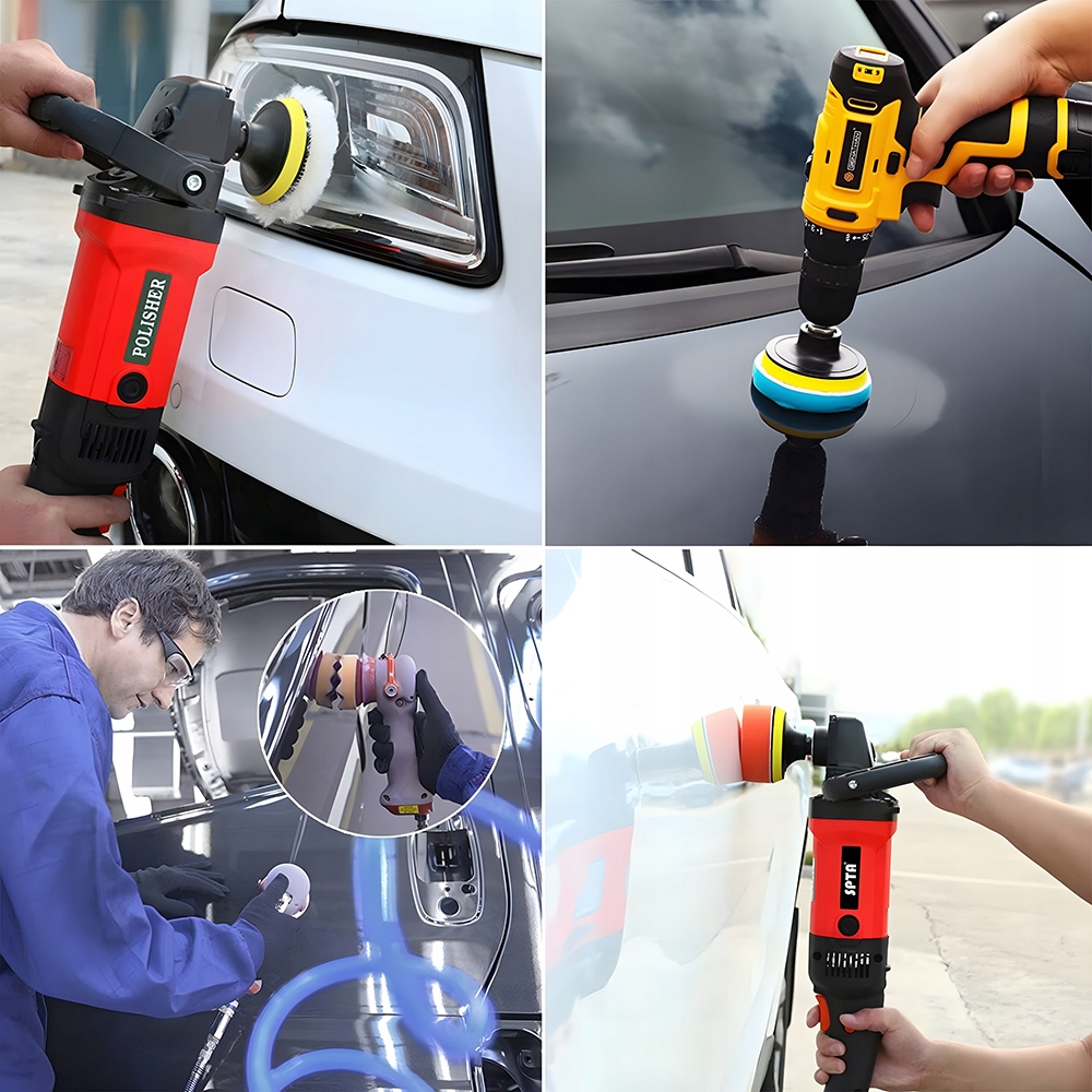 Опис товару. Помаранчеві та білі губки для сирого полірування, жовті губки для помірних полірування темних автомобілів, зелених та червоних губ для помірного полірування легких автомобілів та чорних та синіх губок для точного шліфування. Акумулятор, не потрібно купувати додатковий полірування. подряпини та швидке полірування. Також підходить для полірування автомобілів.