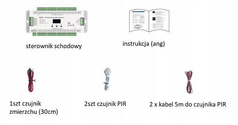 ES32 – це пристрій, що складається з сходового контролера, двох датчиків руху та сутінкового датчика, призначений для керування освітленням сходів, коридорів та інших проходів. Має 32 виходи для підключення джерел світла постійної напруги, напр. стрічки, та їх індивідуальна конфігурація. Всі параметри відображаються на динамічному OLED-дисплеї. Контролер оснащений чотирма режимами роботи та кількома програмами для налаштування способу вмикання/вимкнення освітлення. Послідовність увімкнення може бути визначена датчиком руху PIR або сутінковим датчиком. Кожен з 32 виходів контролера може бути навантажений максимальним струмом 1 А. Пристрій живиться від 5-24 В постійного струму. Детальний опис в каталожній картці виробника, що додається.