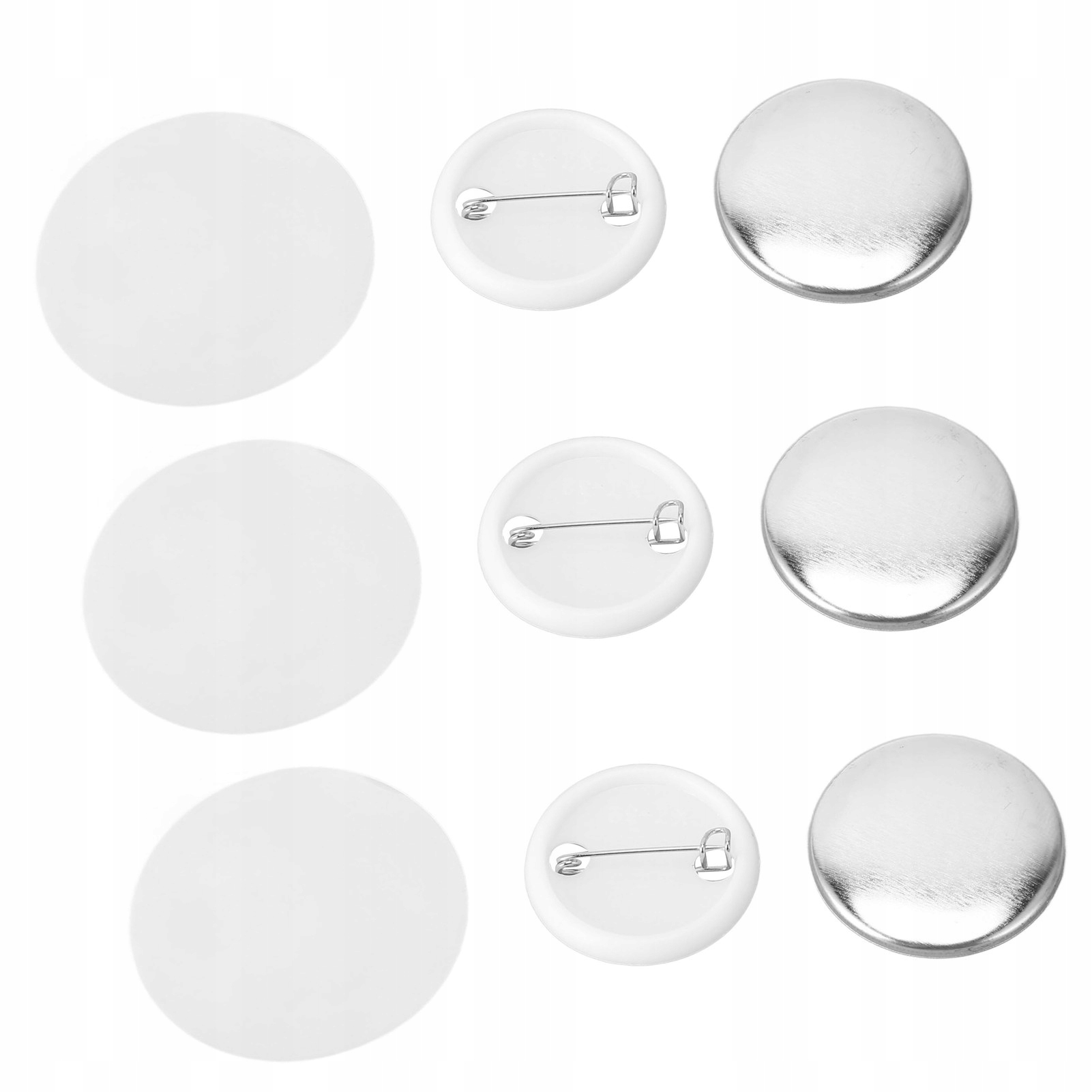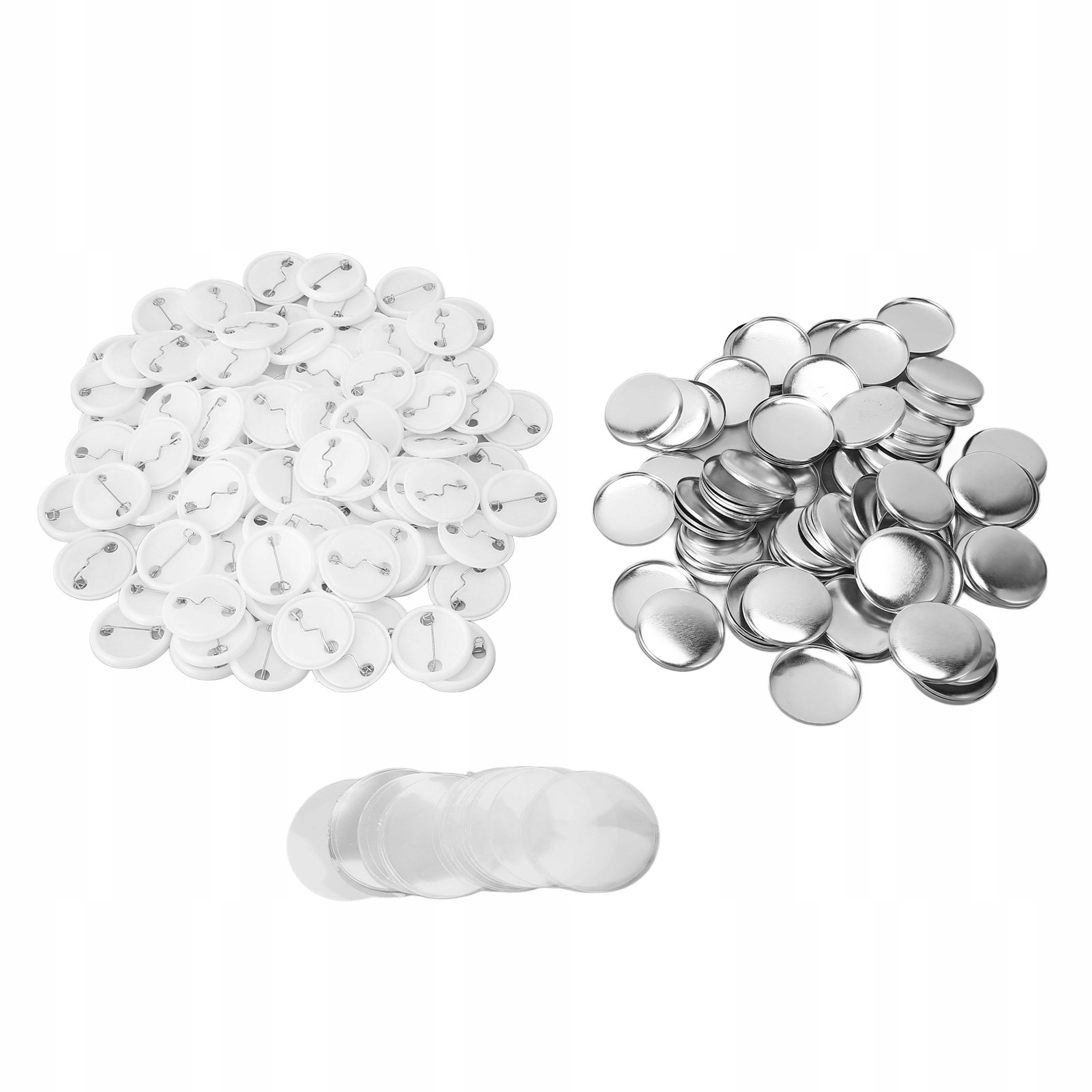 1、100 Набір: Ви отримаєте 100 наборів виробничих матеріалів кнопок, включаючи металеві кришки, пластикові днища та прозорі захисні плівки.