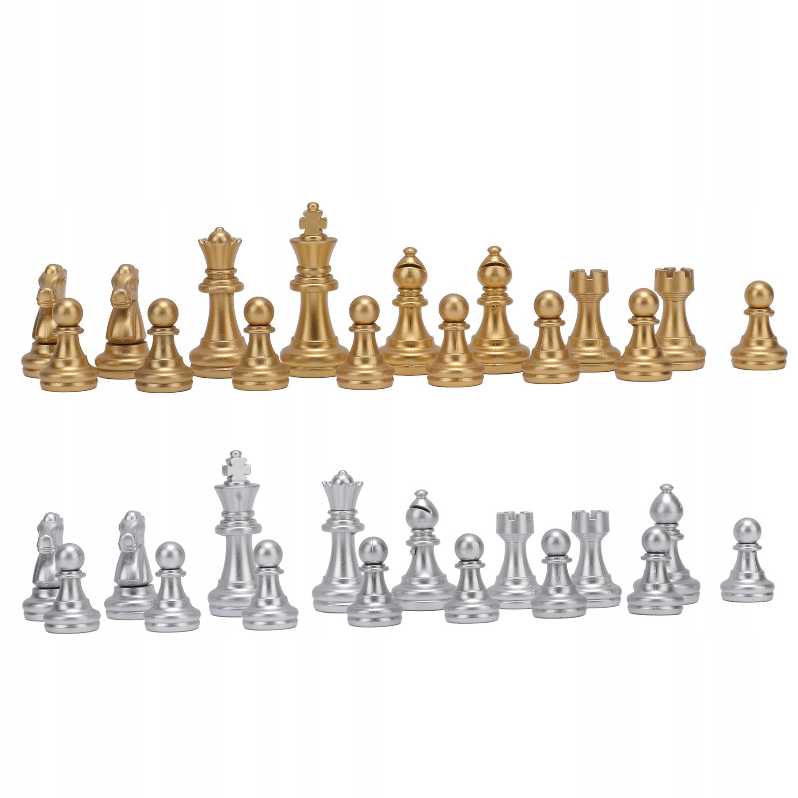 2. Золото та срібло: У упаковці є 32 шахи, 16 штук мають золотий колір та 16 срібних шматочків, які красиві і непрості у зникненні.