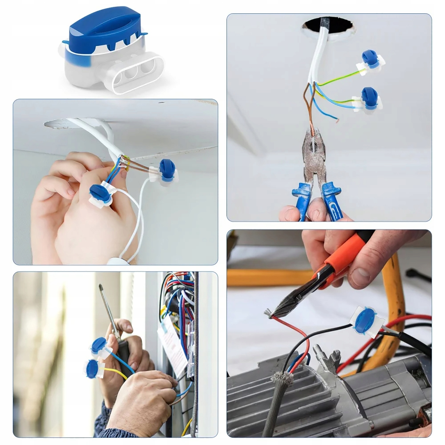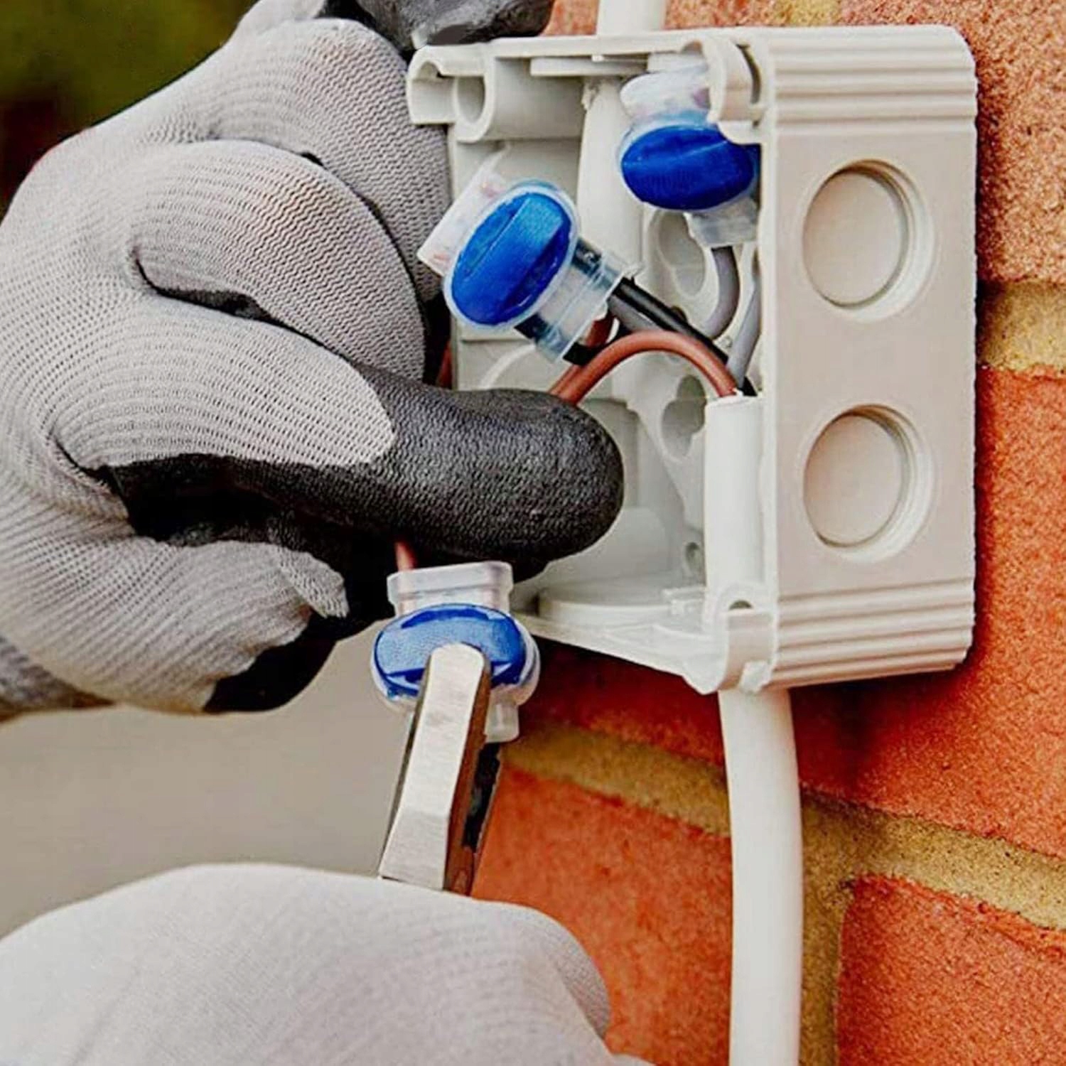 Простота у використанні: Просто скрутіть, вставте дріт у електричний роз’єм, а потім за допомогою обтиску затягніть синю кришку. Продукт підходить для косарок-роботів, електричних огорож для собак, автомобільного електронного обладнання та підземної прокладки кабелю.