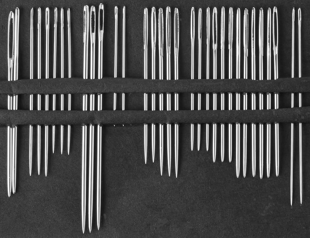 - 12 голок різної довжини для декоративних тканин, гобеленів, також з тупим лезом для вишивання