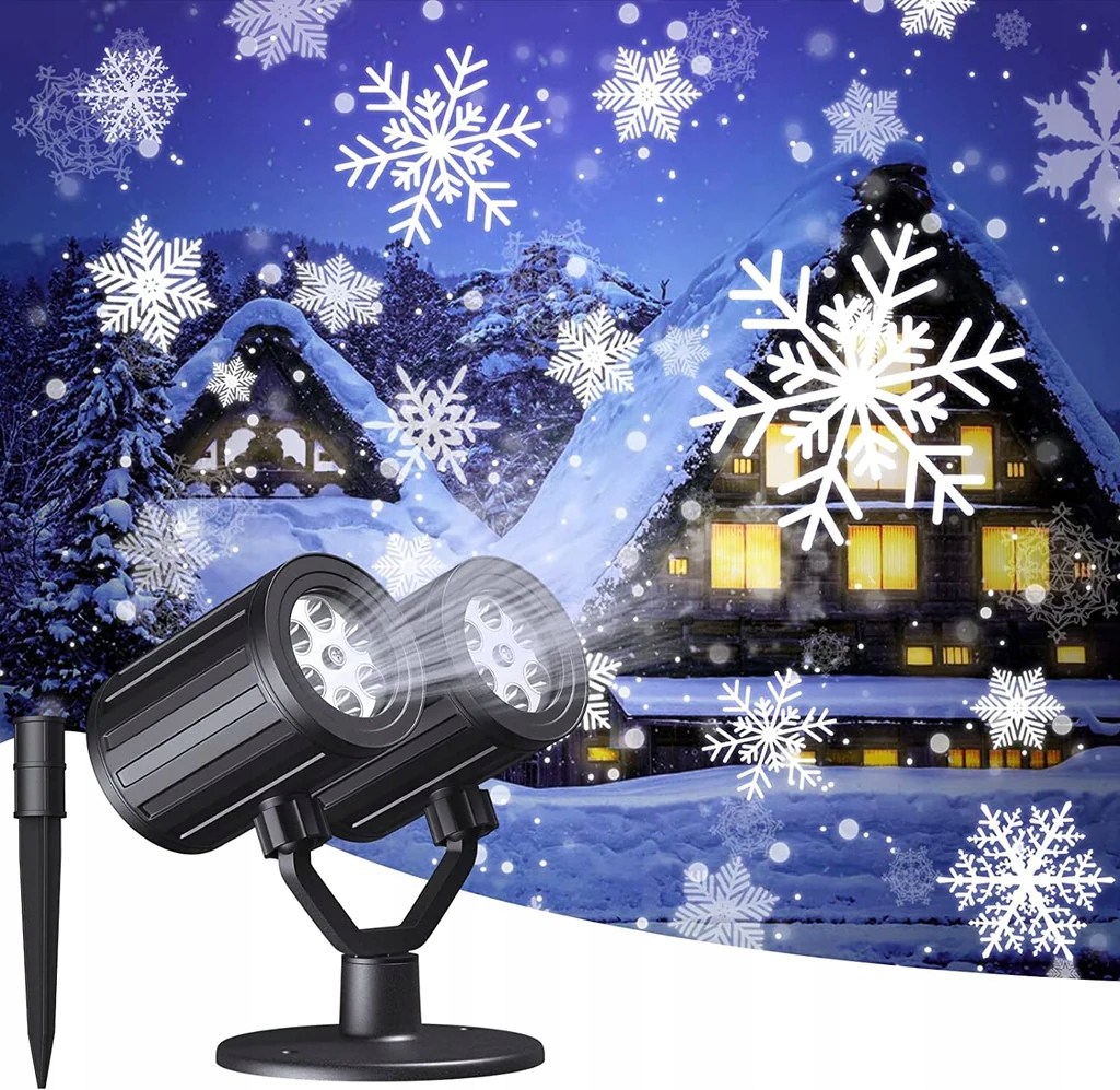 Широка зона охоплення: наш проектор зі сніжинками з подвійною проекційною головкою, відстань проекції становить 10 м, що майже вдвічі збільшує охоплення території. Підставка обертається на 360 градусів, щоб охопити область, яку потрібно освітлити. Величезні сніжинки падають, мерехтять і тьмяніють зверху вниз, створюючи реалістичну сніжну сцену, а різдвяні вогні надворі святкують ваше улюблене Різдво.