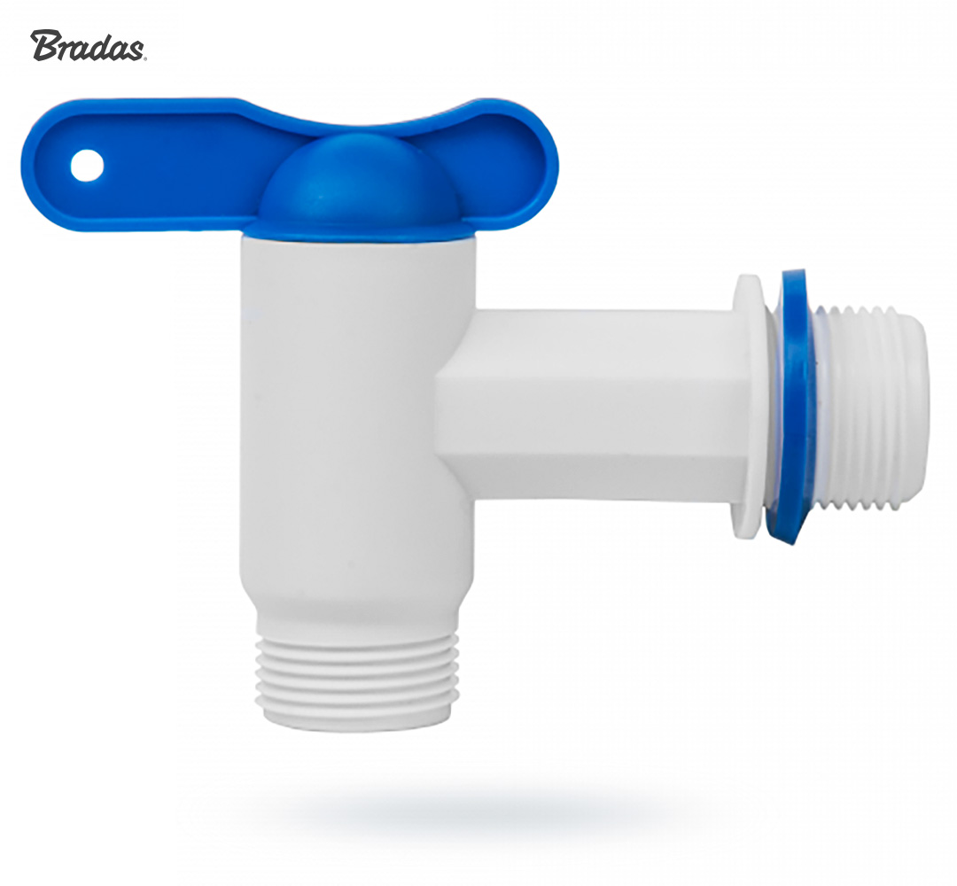 - Кран випускний 2x3/4" для резервуарів IBC із зовнішньою різьбою Bradas GTM3434PP/WHITE/L