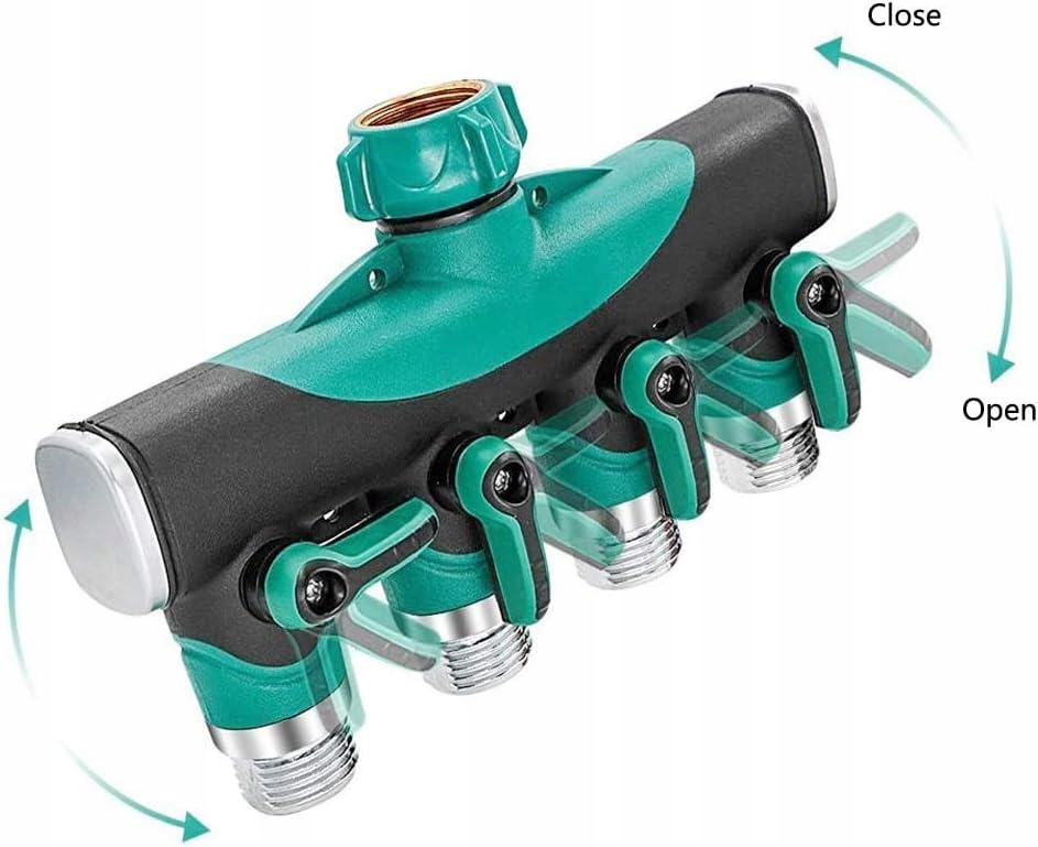 - 4 -ходовий розгалужувач - зручний для управління багатоцільовим поливом, для поливу саду, миття домашніх тварин, машин і машин.Можна використовувати один вихід окремо або кілька.Чудове рішення для поливу саду.