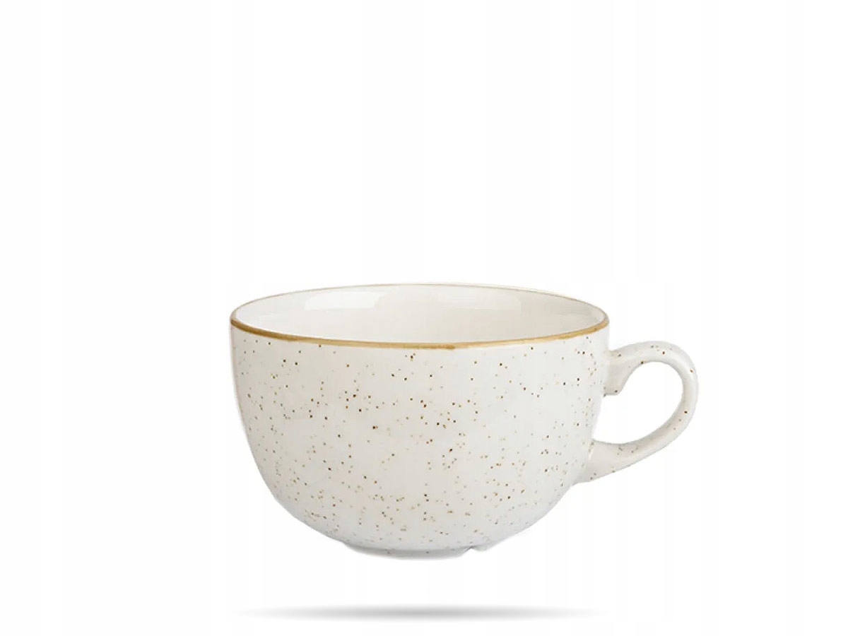 Чашка 320 мл кольору Barley White із серії Stonecast від Churchill. Колір Barley White — це світлий відтінок кремового фарфору, прикрашений ручним візерунком, з коричневим (світлішим або темнішим) краєм.
