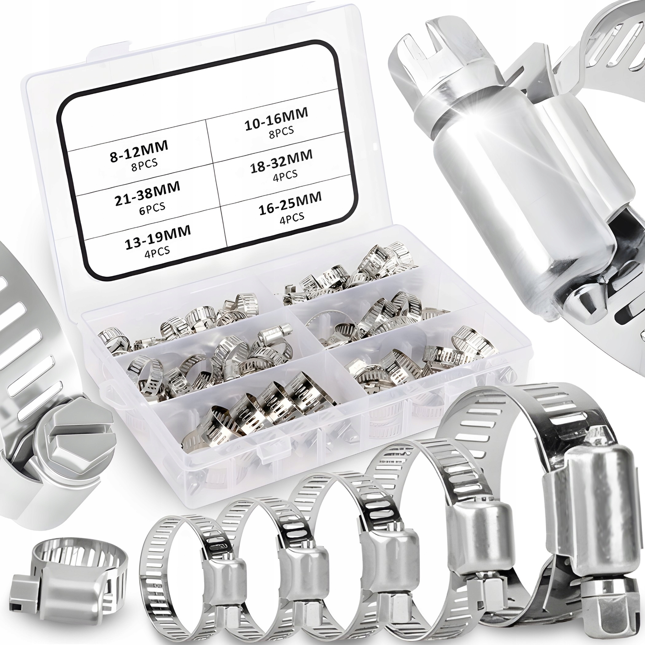 34X КОМПЛЕКТ КЛЕМНОГО ДЖГУТА КРУЧЕНИЙ МЕТАЛЕВИЙ ЧЕРВ'ЯЧНИЙ 16-32ММ + ОРГАНАЙЗЕР