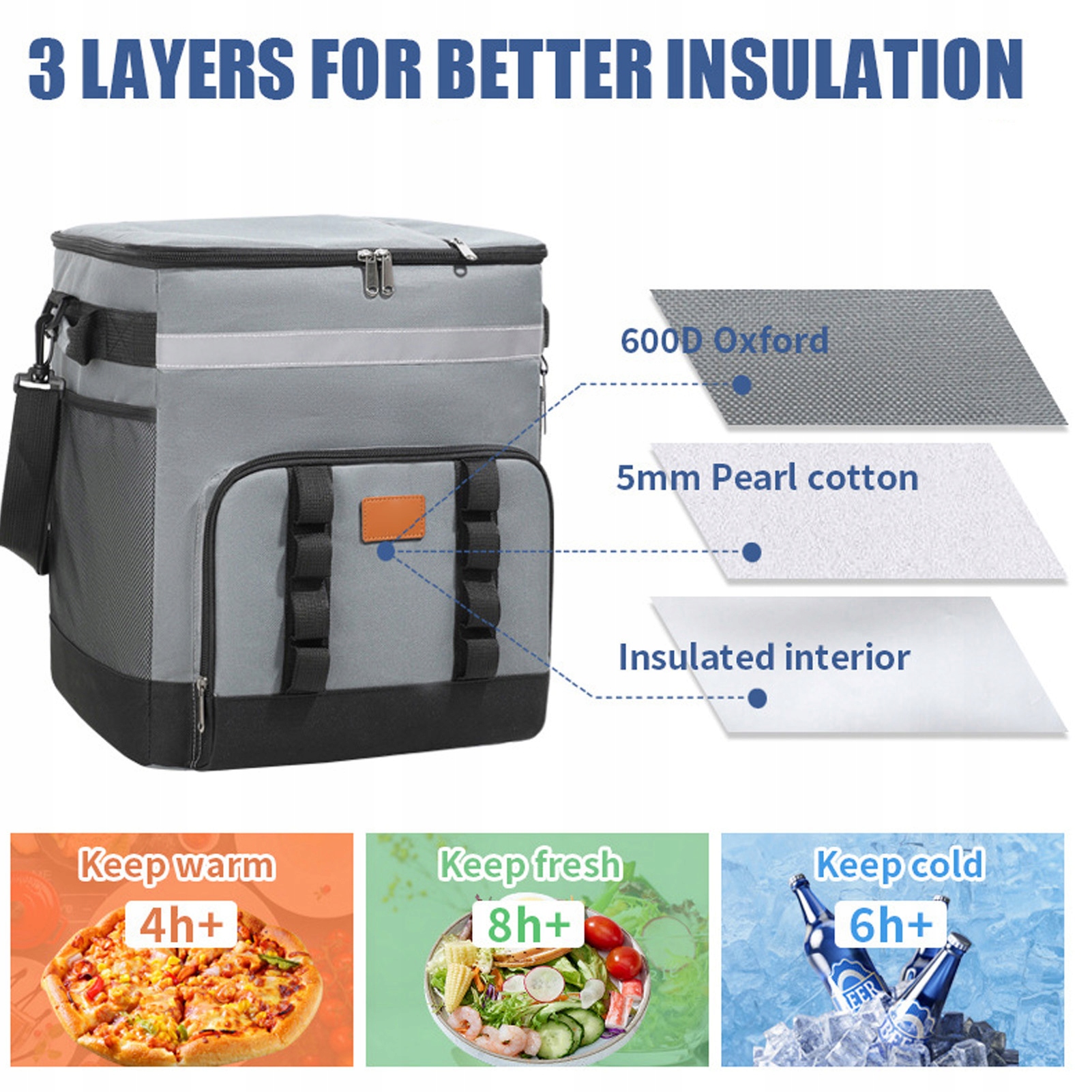 1. 35L просторий сховище: Трохи Koja пропонує велику потужність 35 л, легко вмістити до 60 пляшок із 330 мл кола або еквівалентних предметів, гарантуючи, що всі питимуть достатньо напоїв для сімейних результатів або класів команди. Він не обмежується напоями, він також може вмістити їжу для пікніка, посуд та інші необхідні речі для задоволення різних потреб на вулиці.