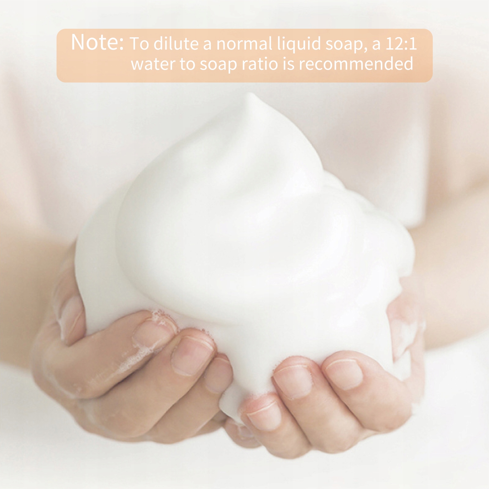 2. [Режим піни] Диспензатор виробляє потрібну кількість товстої, насиченої піни, яка краще очищає ваші руки і вимагає менше води, ніж миття безпосередньо звичайним милом.